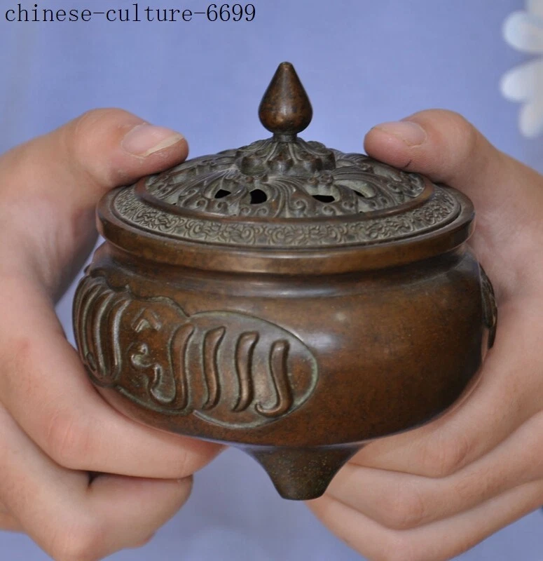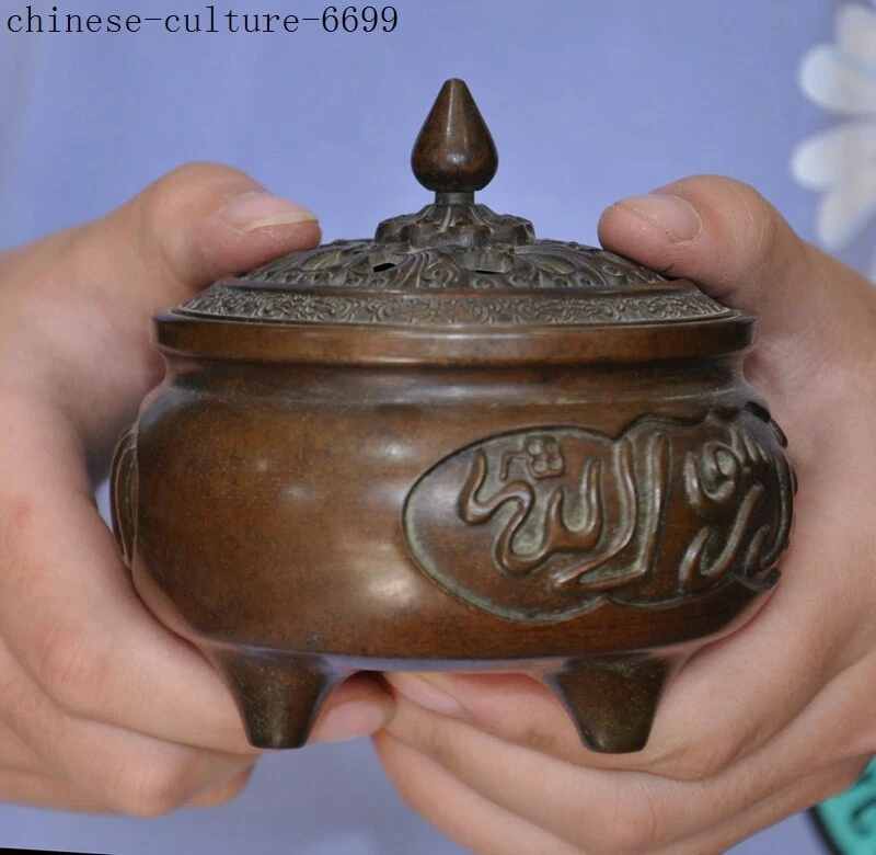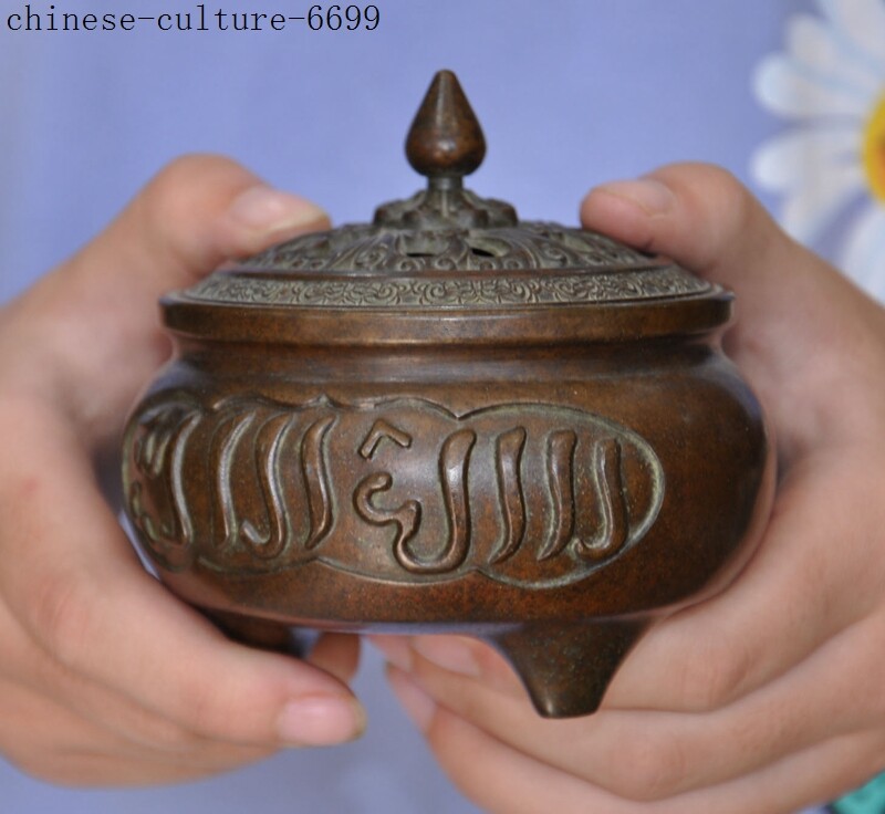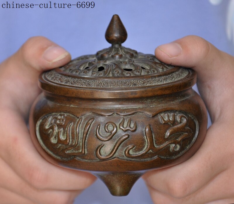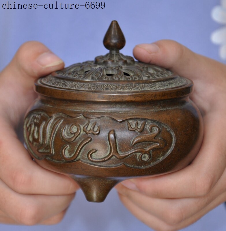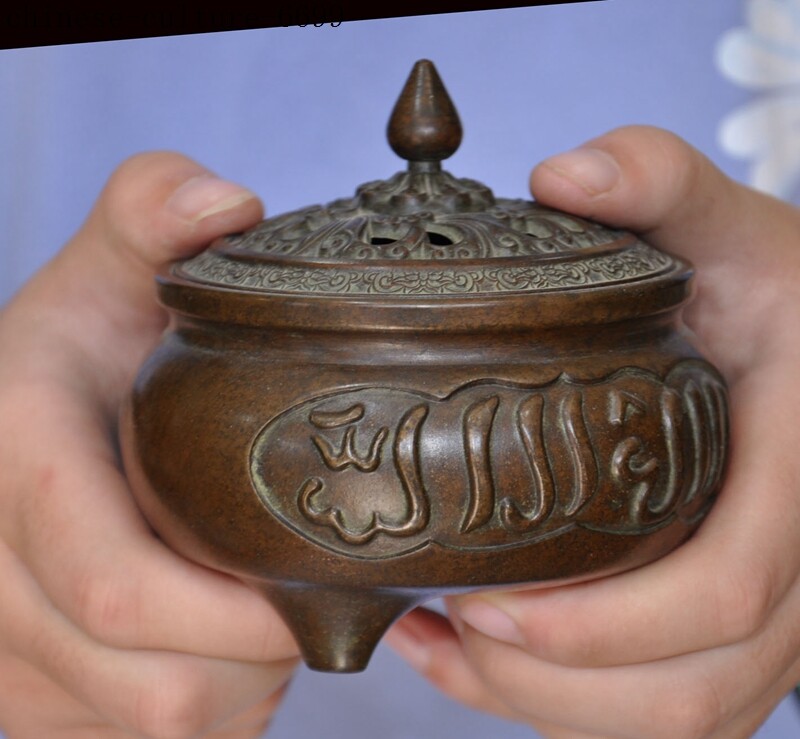 Here is an Marked Marked Old Chinese bronze Buddhism Islamic text joss Incense Burner censer , It is in good condition, and was created by skilled craftsmen in traditional style with fine handcrafts . This is a great piece of valuable collection, a valuable personal alter or a very good present. the handwork is very fine with incredible detailing. Don't miss out this chance to get it .Wish you good luck! Size:Height: 4 inch . Long: 3.6 inch . width: 3.6 inch Size:Height : 10 CM . Long: 9 cm . width: 9 cm Weight: 2.8 KG----included the weight of packing materials Materials: bronze Condition: Good condition Origin: China Shipping cost by Air Mail / EMS (7-15 days ) : $Free we only accept paypal if you have any problems on payment,please inform us via ebay message . 1.We ship regularly Monday to Saturday (Beijing Time) and will ship your items within 1-2 days upon payment received. If we can not ship your item on time for some special reason, we will inform you via ebay message. 2.We are not responsible for nor can we offer any specific advices on import fees, duty, customs, VAT or taxes that you may have to pay when your order arrives. 3.We ship the items according to your Paypal address except the special notes from buyers! Be sure that your Paypal address is correct when you buy the items in ebay. We do not take responsibility for item loss due to wrong address. 4.Estimated delivery time: Shipping may be influenced by holidays, events and some other uncertainties. If you dislike the seemingly long shipping time, please think carefully to bid or buy the item. We do not want to get a negative or neutral or low DSR score because of shipping time. If you have special demand on shipping time, please inform me via ebay message. We want to give you a happy shopping experience, when you are not satisfied with our products, please contact us on EBAY, we are responsible seller, we will solve your problem, please believe us,thanks! If you're in any way dissatisfied with your purchase, let me know through "MY MESSAGES" or "Ask Seller Questions" or our mailbox. We will solve it for you. We are committed to ensuring that you are completely satisfied with every transaction. 100% Satisfaction guaranteed ! We will reply your mail with in 24 hours normally. Sometimes have a little delay due to the weekends or holidays. If you can't get our mail after 48 hours, please check your spam or contact to us via Ebay. B L AA DD Z In addition to contact us through eBay or you can send your message to our mailbox. Any question, please feel free to contact us, we will always do our best to serve you. Business Hours: Mon-Sat 9:00-17:30:00 (HongKong Time GMT+8:00)