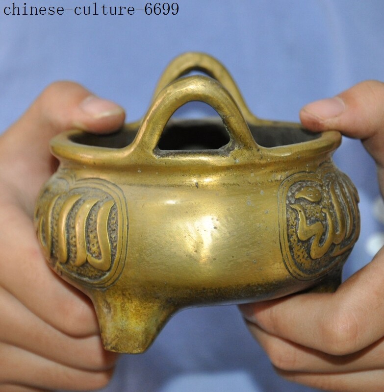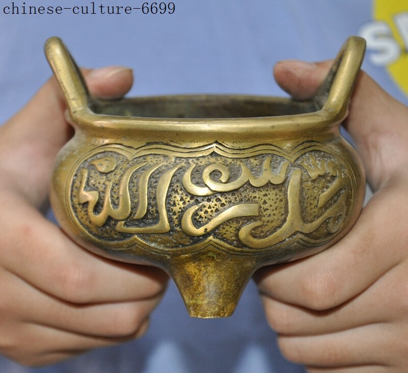Here is an Marked Marked Old Chinese bronze Buddhism Islamic text joss Incense Burner censer , It is in good condition, and was created by skilled craftsmen in traditional style with fine handcrafts . This is a great piece of valuable collection, a valuable personal alter or a very good present. the handwork is very fine with incredible detailing. Don't miss out this chance to get it .Wish you good luck! Size:Height: 3.6 inch . Long: 4 inch . width: 4 inch Size:Height : 9 CM . Long: 10 cm . width: 10 cm Weight: 0.6 KG----included the weight of packing materials Materials: bronze Condition: Good condition Origin: China Shipping cost by Air Mail / EMS (7-15 days ) : $Free we only accept paypal if you have any problems on payment,please inform us via ebay message . 1.We ship regularly Monday to Saturday (Beijing Time) and will ship your items within 1-2 days upon payment received. If we can not ship your item on time for some special reason, we will inform you via ebay message. 2.We are not responsible for nor can we offer any specific advices on import fees, duty, customs, VAT or taxes that you may have to pay when your order arrives. 3.We ship the items according to your Paypal address except the special notes from buyers! Be sure that your Paypal address is correct when you buy the items in ebay. We do not take responsibility for item loss due to wrong address. 4.Estimated delivery time: Shipping may be influenced by holidays, events and some other uncertainties. If you dislike the seemingly long shipping time, please think carefully to bid or buy the item. We do not want to get a negative or neutral or low DSR score because of shipping time. If you have special demand on shipping time, please inform me via ebay message. We want to give you a happy shopping experience, when you are not satisfied with our products, please contact us on EBAY, we are responsible seller, we will solve your problem, please believe us,thanks! If you're in any way dissatisfied with your purchase, let me know through "MY MESSAGES" or "Ask Seller Questions" or our mailbox. We will solve it for you. We are committed to ensuring that you are completely satisfied with every transaction. 100% Satisfaction guaranteed ! We will reply your mail with in 24 hours normally. Sometimes have a little delay due to the weekends or holidays. If you can't get our mail after 48 hours, please check your spam or contact to us via Ebay. B L AA DD Z In addition to contact us through eBay or you can send your message to our mailbox. Any question, please feel free to contact us, we will always do our best to serve you. Business Hours: Mon-Sat 9:00-17:30:00 (HongKong Time GMT+8:00)