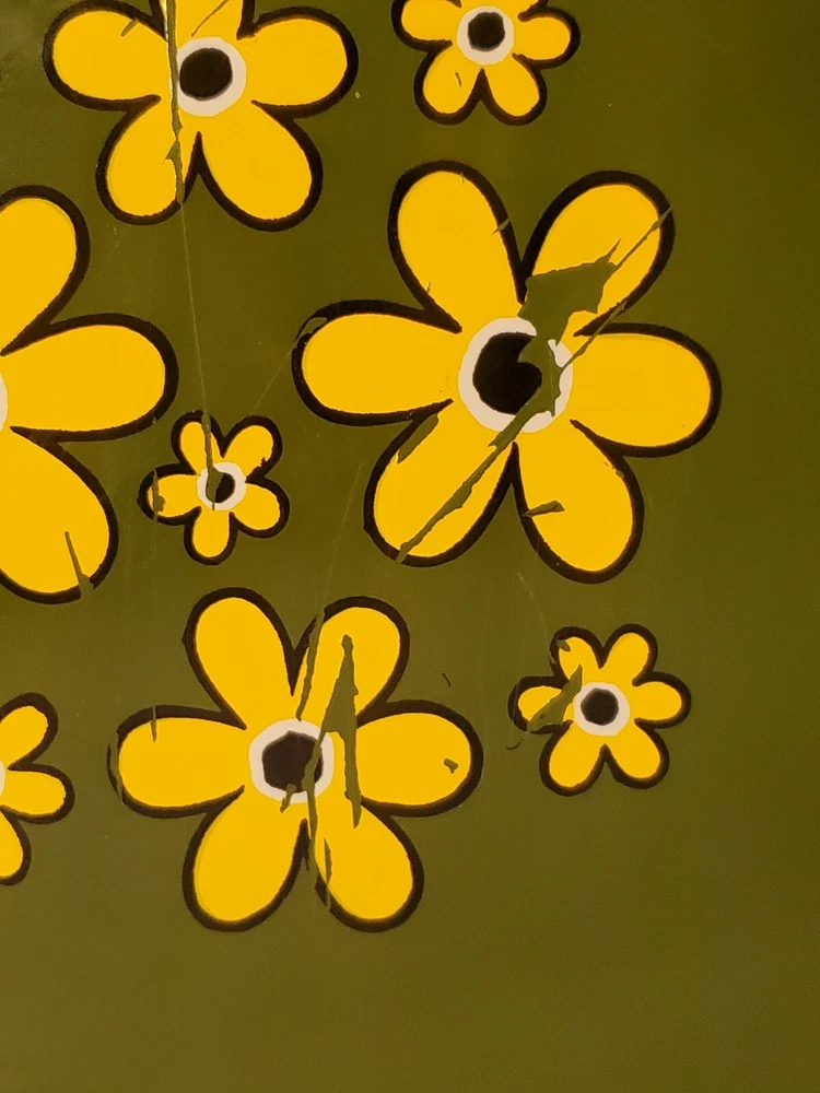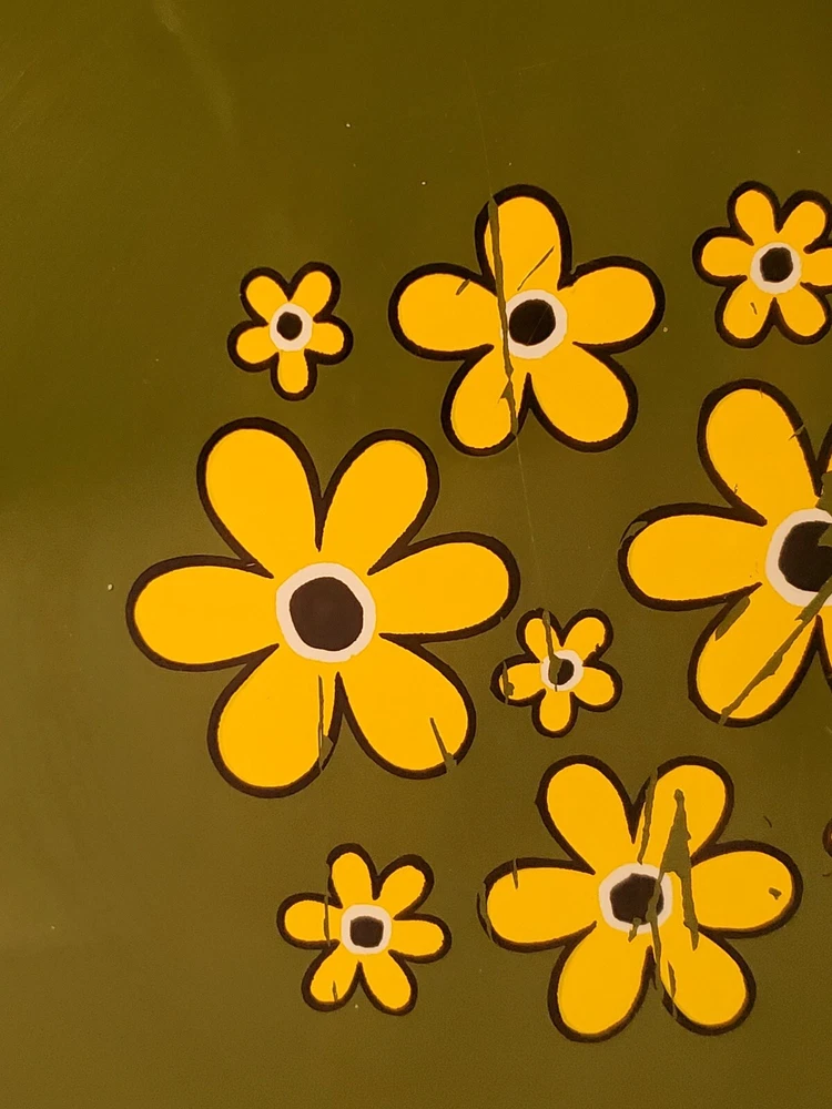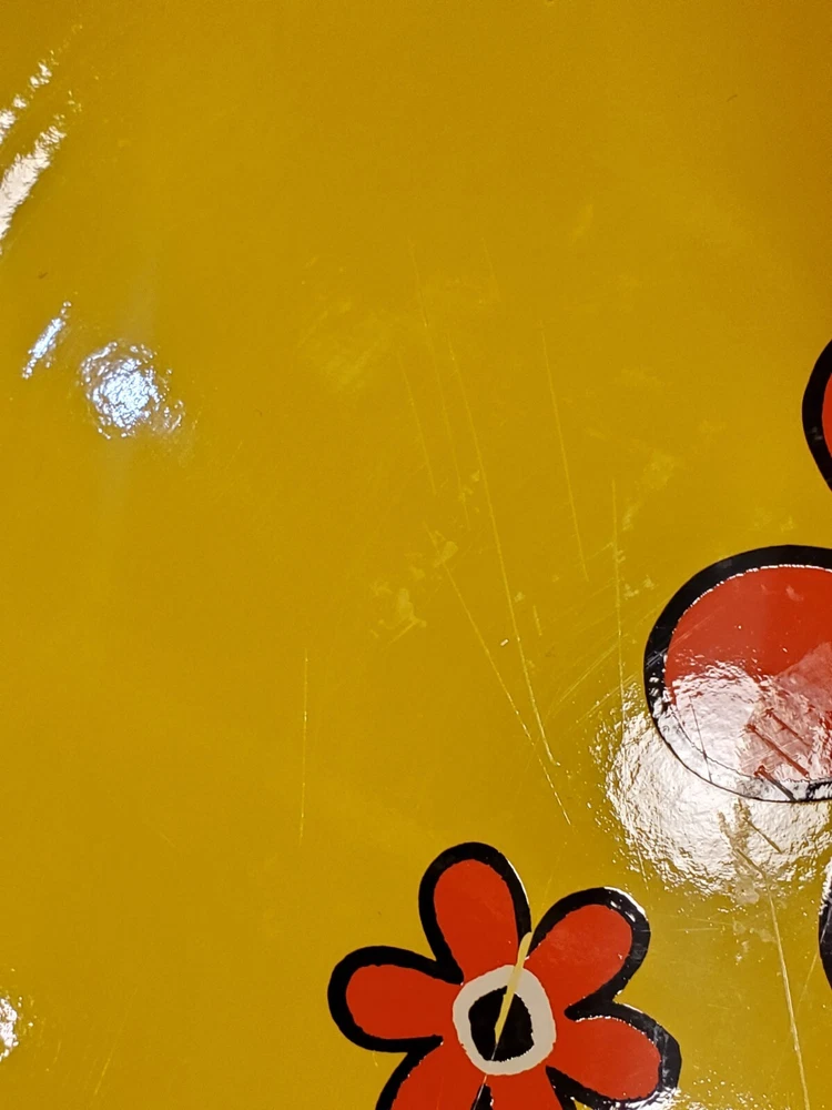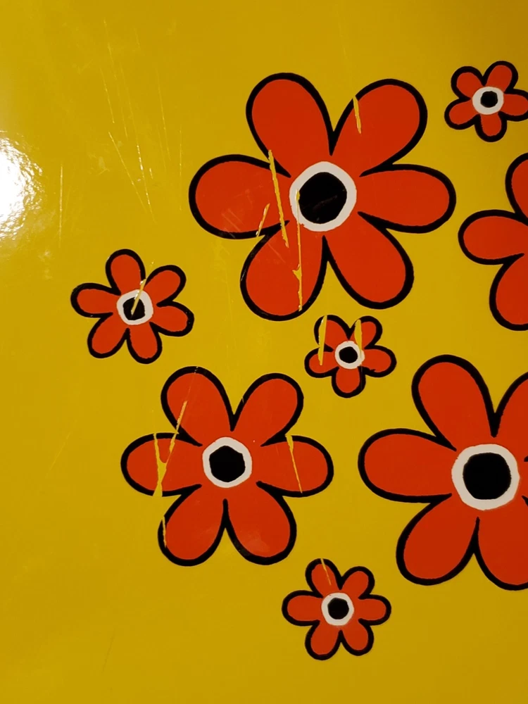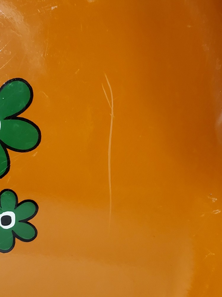 These are vintage so there us some scratches on all of them. Some more scratches than others (see pics) This stunning platter, measuring 13 inches in diameter, is a true representation of the mid-century modern style. The vibrant yellow, green and orange flower power design adds a touch of retro charm to any decor. The lucite material of this platter ensures durability and longevity. This platter belongs to the decorative cookware, dinnerware and serveware category and is perfect for serving up your favorite dishes at dinner parties or family gatherings. The brand, Flower Power, is known for their unique and colorful designs. The platter's color, type, theme, and style are all important aspects that make it a must-have for any mid-century modern enthusiast.