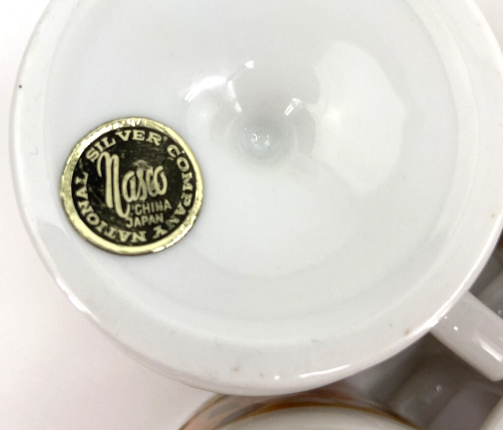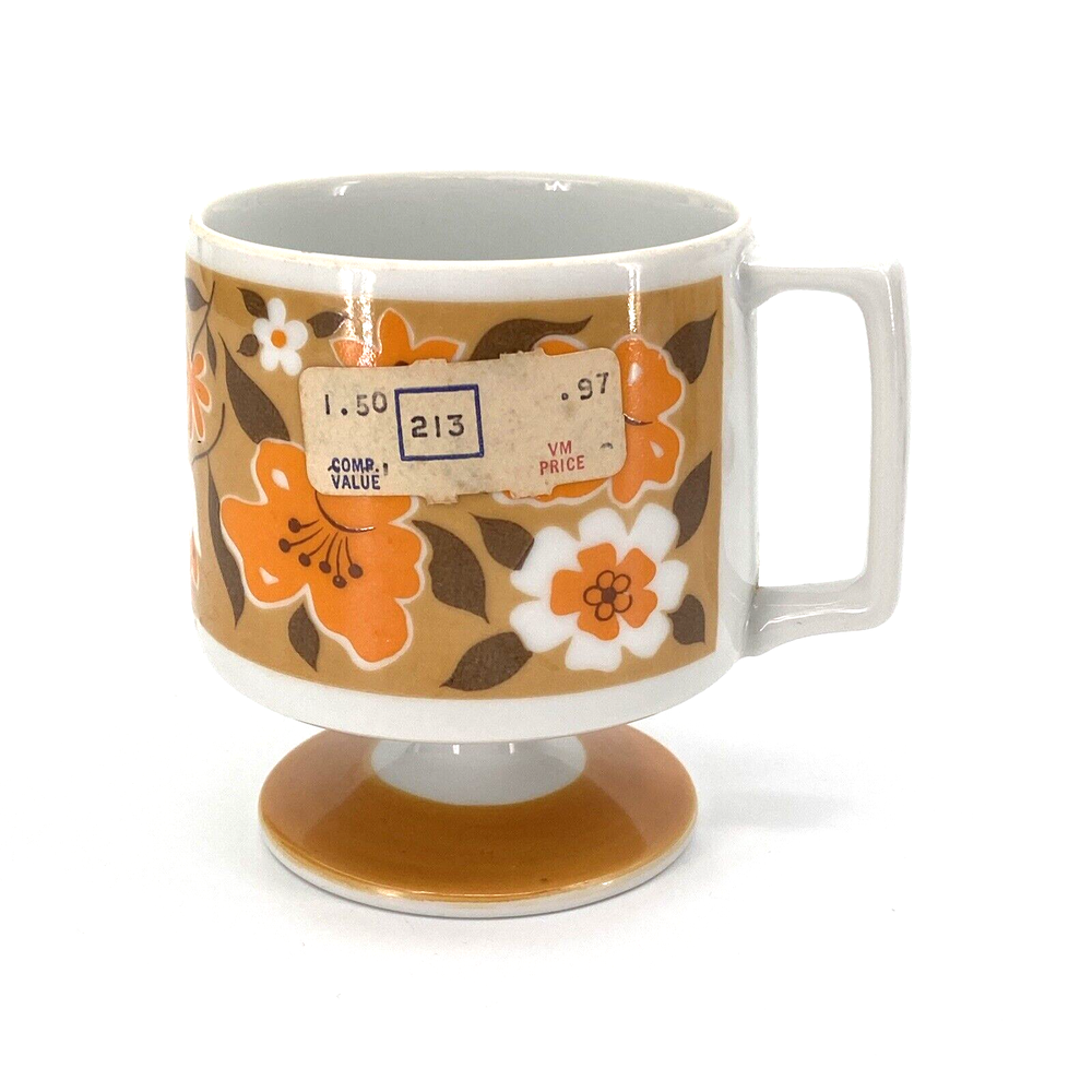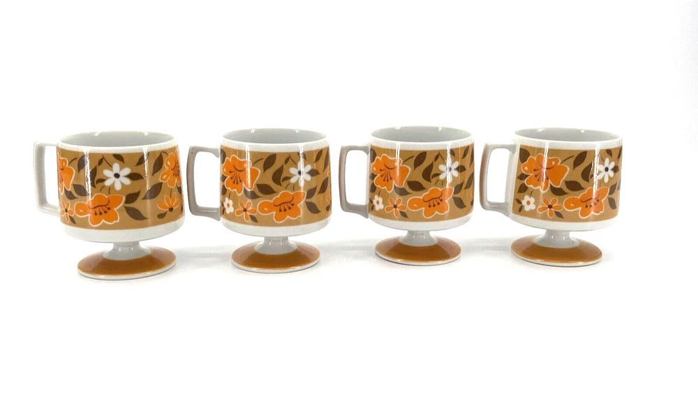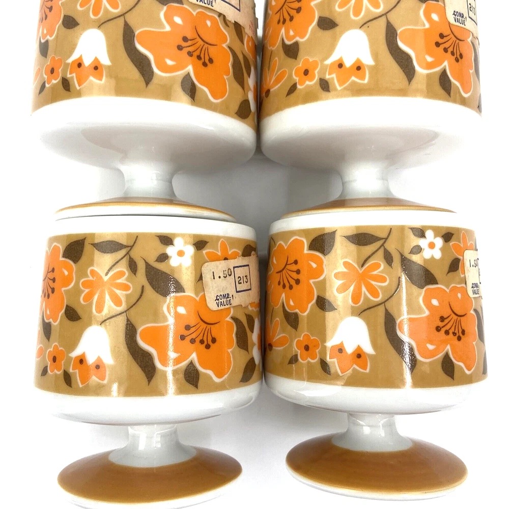 New Old Stock - Original Price Stickers Still Attached! Set of 4 Vintage National Silver Co Pedestal Coffee Cups Orange and White Floral Motif