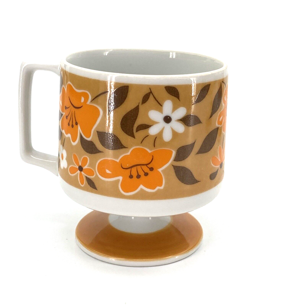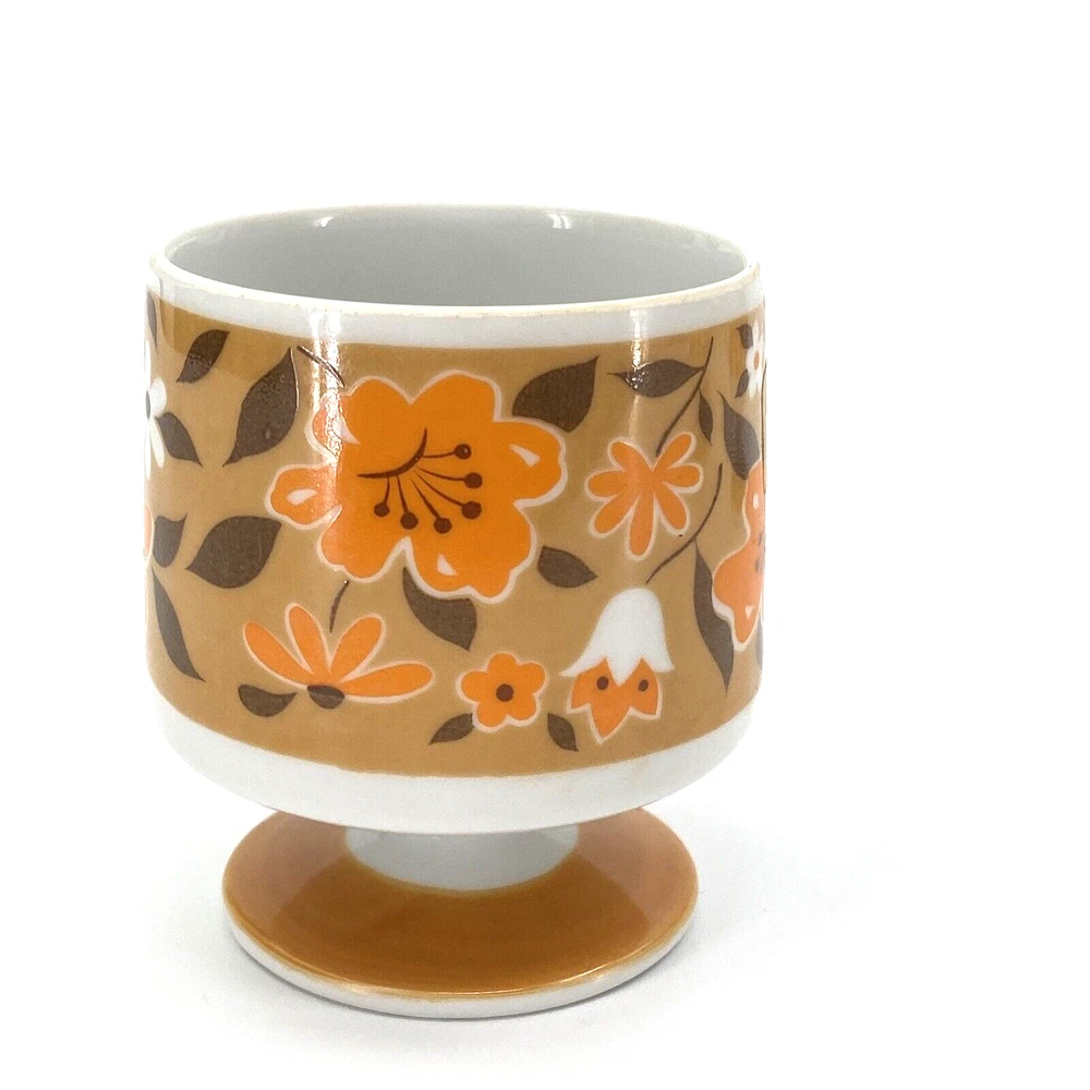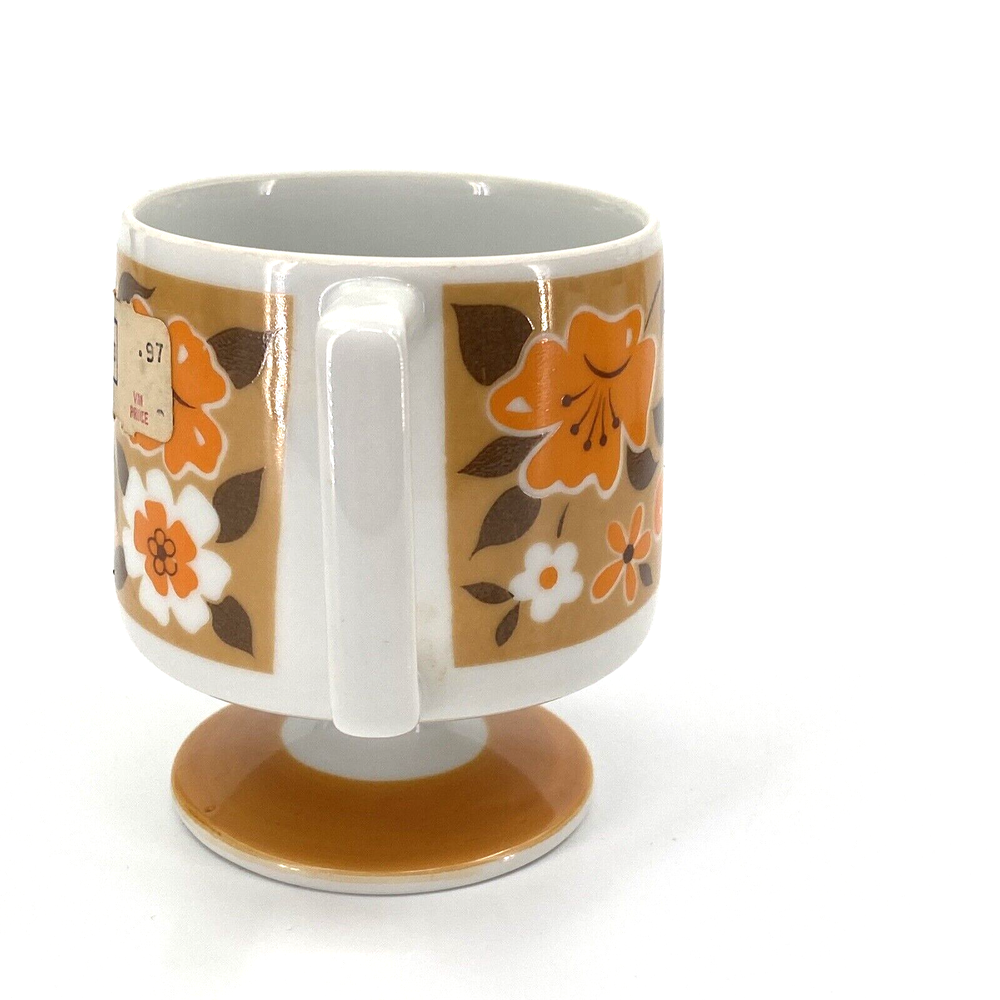 New Old Stock - Original Price Stickers Still Attached! Set of 4 Vintage National Silver Co Pedestal Coffee Cups Orange and White Floral Motif...