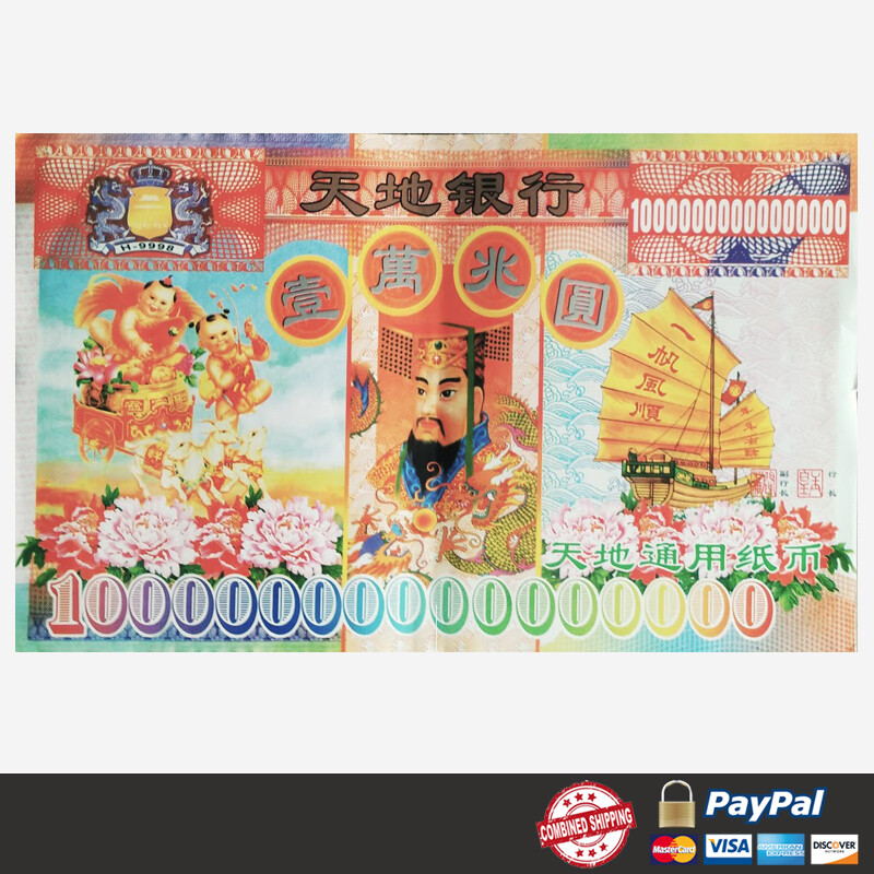 💘Joss paper money notes Chinese heaven hell money notes 💛 1 pack 40 sheets Giant Hell Bank Note, FREE 60pcs 500Mil Hell Bank Note 💚These hell bank notes feature an image of the Jade Emperor, the presiding monarch of heaven in Taoism. 🧡The notes are used to burn for the 'Hell Gods,' offering them monetary distraction so they will leave mortals at peace. They are also commonly burned as offerings for ancestors and requests for blessings of prosperity and good fortune. Report incorrect product in 💛 Suitable use on Funerals, Ancestor Birthdays and Death Anniversaries, Qingming Festival, Hungry Ghost Festival, Daily Life Why to Burn Joss Paper ✅ Put in more contemporary terms, burning joss paper provides the opportunity to make space and take time to remember the loved ones in your life. ✅ According to tradition, the Chinese believe that the deceased have needs similar to those in the natural world. Joss paper is burned at funerals and during important dates thereafter to help the deceased pay off debts, trade for goods and exist comfortably in the spirit world. When to Burn Joss Paper ✅ There are many occasions to burn joss paper throughout the year, and each instance carries a slightly different meaning and requirements. ✅For some people, burning joss paper is a near-daily spiritual practice; for others, it’s something that’s done only during holidays and important family gatherings. Here’s how to decide what’s right for you. ✅ Funerals ✅ Ancestor Birthdays and Death Anniversaries ✅ Qingming Festival ✅ Hungry Ghost Festival ✅ Daily Life ✅ Hell money is a form of joss paper printed to resemble legal tender bank notes. ✅ This faux money has been in use since at least the late 19th century and possibly much earlier. ✅ Early 20th century examples took the resemblance of minor commercial currency of the type issued by businesses across China until the mid-1940s. ✅ The notes are not an officially recognized currency or legal tender since their sole intended purpose is to be offered as burnt-offerings to the deceased as often practiced by the Chinese and several East Asian cultures. ✅ The identification of this type of joss paper as "hell bank notes" or "hell money" and singling them out is largely a western phenomenon, since these items are simply regarded as yet another form of joss paper in East Asian cultures and have no special name or status.
