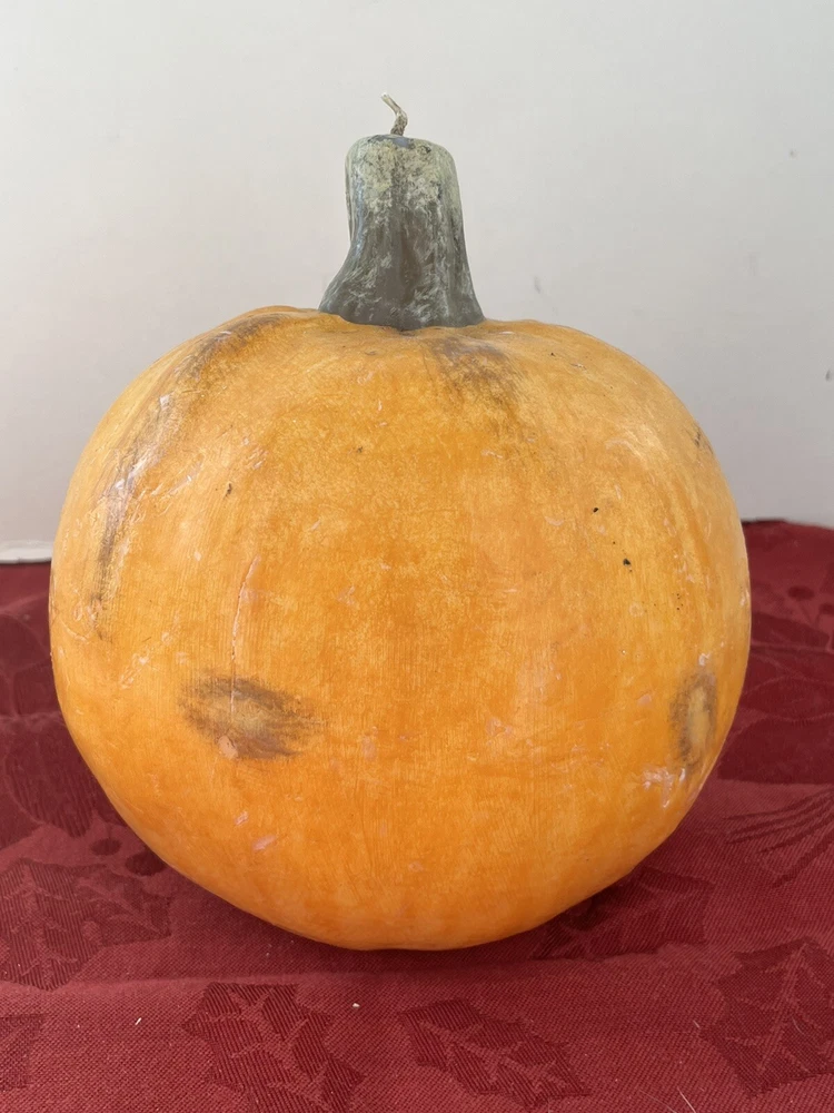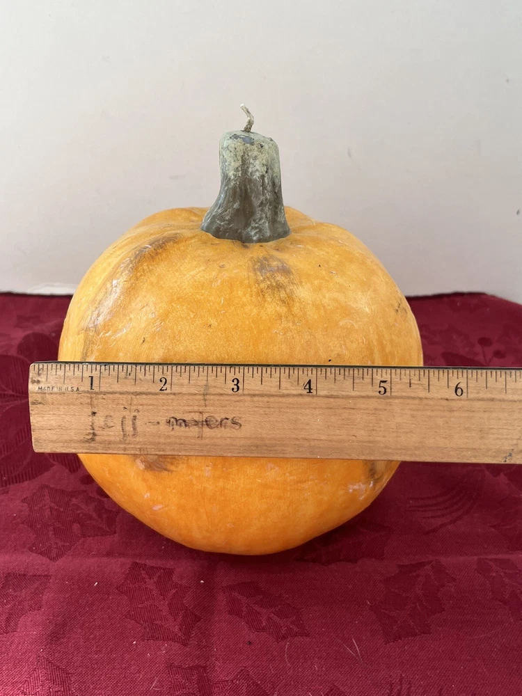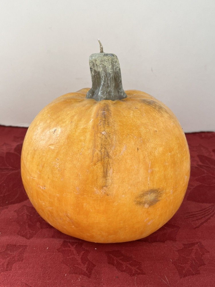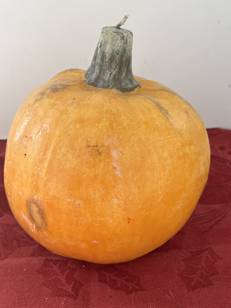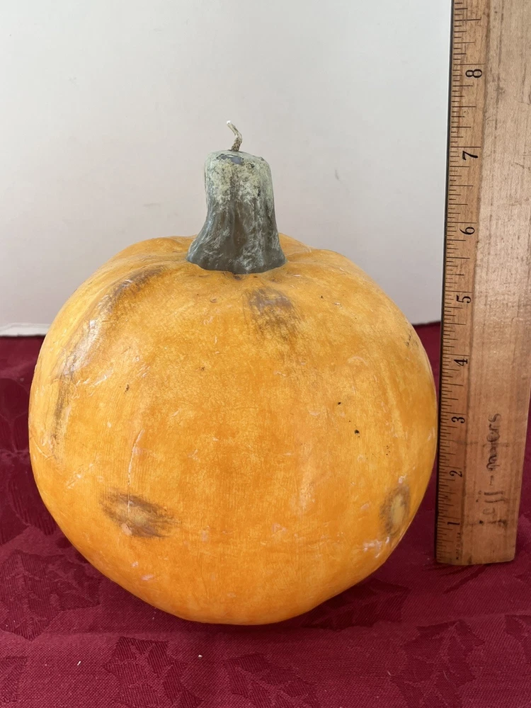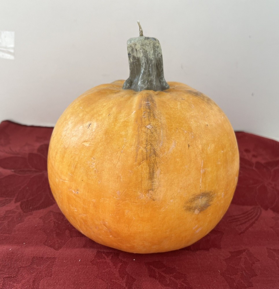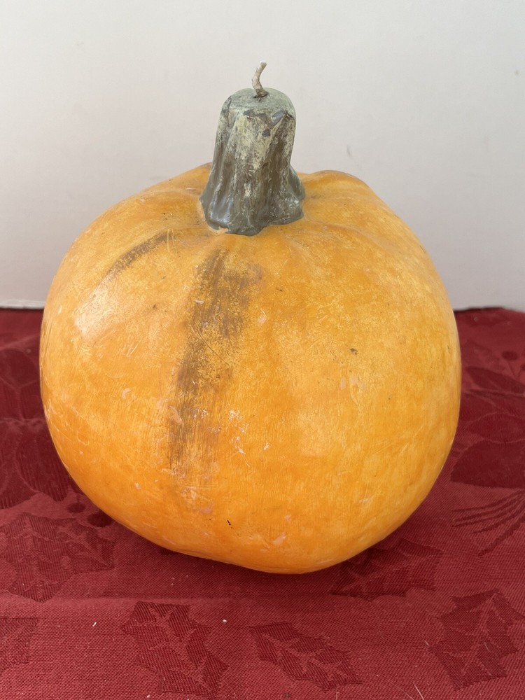 This auction is for a pre owned (in new unburied condition) A 4LB. FIGURAL ROUND REALISTIC ORANGE PUMPKIN CANDLE THE WICK IS VISIBLE ON THE STEM. GREAT FOR HALLOWEEN, FALL HARVEST DECOR. No damage. SEE many photos.. Fast Shipping. (Mtl RCK UNDR wndw) PHOTOS: Please view the many photos on my auctions for close ups and details of condition. Consider the photos as part of the description. Please take the time to click on each photo to enlarge it for details. I also put a ruler in many photos for size. CONDITION: I sell many items in varying stages of condition. Items are stored in my non-smoking, pet free home. Here is a general breakdown: New - A new item from the store, new with tags, or sealed item, never used. Used - A previously owned item will be in good usable condition, unless otherwise noted. Estate Sale item - These items may be old or antiques, their previous environment may have been a smoking or musty one. Some items may need minor cleaning or dusting. PACKAGING: I will package your item carefully and thoughtfully. I use new and recycled packaging materials. I will ship within 24 hours or sooner if possible. I do combine items into one package for multiple wins (if possible). Some larger items cannot be combined. If you purchase multiple items, please contact me to give me a heads up, and also wait for me to send a revised invoice with discount. SALES TAX: I am now required to collect NYS sales tax in the amount of 8% for all NYS residents who purchase my auctions. INTERNATIONAL BIDDERS: If you are an International bidder and wish to bid, please send me a message. I will give you a shipping quote, via First Class International for packages under 4 pounds. FEEDBACK: I strive to obtain a 5 star feedback from you. I pledge to ship fast/accurately describe/communicate swiftly/charge appropriate shipping. Please keep in mind; I will get your purchase to the post office within 24 hours. How long it takes the Post Office to deliver, is not what I am being rated on. If you ask me a question – I will usually answer you right away. I charge the shipping charges set forth by the Post Office, I cannot be held responsible for the high cost of shipping. You can check their website USPS, calculate a price, put in my zip code to your zip and weight of package, which is on the box and you will see how much shipping cost. I am by no means an expert in all that I sell, I will try to the best of my ability to describe my items. Please feel free to ask a question if I have left out a detail. I also welcome advice and helpful thoughts. HAVE A PROBLEM? If you have a problem or concern, please contact me directly. Go to your Purchase History, click on my auction, on the far right will be a drop down box which says More Actions. Click on the arrow and choose contact Seller. I am easy to work with and will make things right for you. COPYING: Did you know Ebay has a policy that prohibits someone from copying your text or photos? It can be found at ebay.com/help/policies/image-text.html - The offending listings can be removed if reported. So please don't copy any part of my listings without permission. NON-PAYING BIDDERS - When you Bid and Win - I am instantly charged a Final Value Fee. When you Don't Pay, I am still charged that fee by Ebay. In order for me to get that Fee refunded to me I must File a Non Paying Bidder Alert through Ebay. I give you 4 days to pay. If you need more time let me know.  Track Page Views With Auctiva's FREE Counter