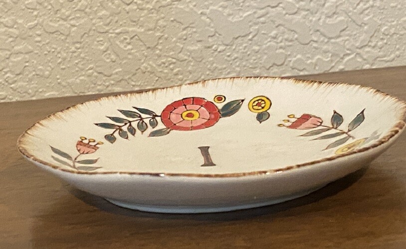 Monogram Initial Letter "I" Plate Plate is approximately 5 1/2" in diameter Multi Earthtone colors Microwave, dishwasher and over safe Stoneware Each plate is hand-painted therefore there may be slight variations in plates Box seen in picture is for display only....You receive ONE plate only I have plates with other initials in the Store Category "Kitchen" Please look carefully at the pictures and ask any questions before buying as there are NO RETURNS Shipping Discount : When purchasing ANY items in my store, PLEASE do the following: Put each item you want to purchase in your cart by clicking "Add to Cart". When you are finished adding all the items you wish to purchase, click on the Cart at the top of the page. Then click on "Go to Checkout" and the shipping discount will be automatically applied. You are only charged full price shipping on one item in your cart (the one with the highest shipping cost if different kinds of items are purchased) If you have any problems, please let me know. For this particular item, Shipping cost for first one is $4.95. Any additional items in this listing will have a shipping cost of $3.00 when purchased and paid for in the same order at the same time . This is automatically calculated at check out.