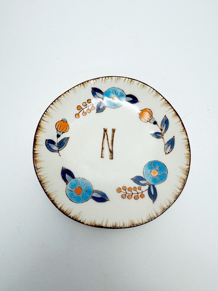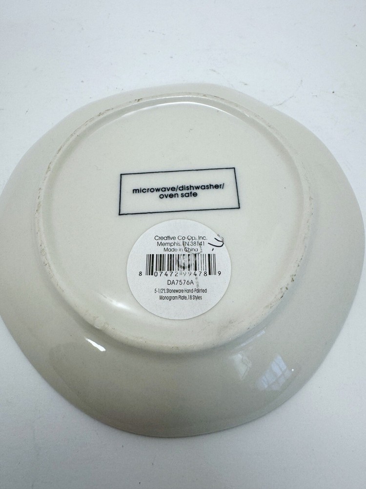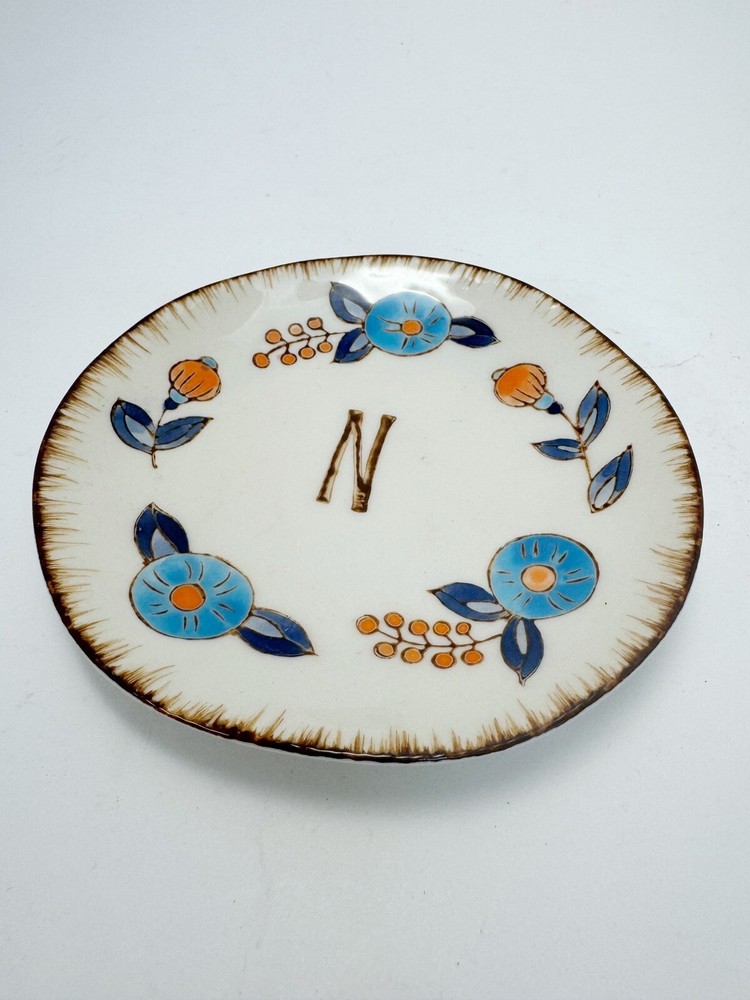 This 5 1/2" plate by Creative Co-Op is a beautiful addition to any home decor. The hand-painted floral design in earthtones with a monogram initial letter "N" makes it perfect for serving desserts or as a decorative display. Made of durable stoneware, this small plate is perfect for casual dining or special occasions. Its features include intricate floral patterns that give it a stunning look. This item belongs to the Pottery & Glass category and is ideal for those who love decorative cookware, dinnerware, and serveware. Get your hands on this unique piece that will surely impress your guests.