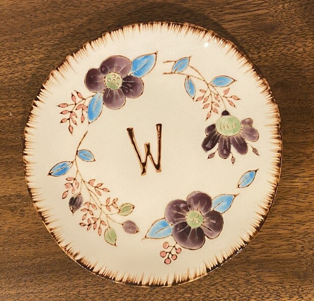 Monogram Initial Letter "W" Plate Plate is approximately 5 1/2" in diameter Multi Earthtone colors Microwave, dishwasher and over safe Stoneware Each plate is hand-painted therefore there may be slight variations in plates Box seen in picture is for display only....You receive ONE plate only I have plates with other initials in the Store Category "Kitchen" Please look carefully at the pictures and ask any questions before buying as there are NO RETURNS Shipping Discount : When purchasing ANY items in my store, PLEASE do the following: Put each item you want to purchase in your cart by clicking "Add to Cart". When you are finished adding all the items you wish to purchase, click on the Cart at the top of the page. Then click on "Go to Checkout" and the shipping discount will be automatically applied. You are only charged full price shipping on one item in your cart (the one with the highest shipping cost if different kinds of items are purchased) If you have any problems, please let me know. For this particular item, Shipping cost for first one is $4.95. Any additional items in this listing will have a shipping cost of $3.00 when purchased and paid for in the same order at the same time . This is automatically calculated at check out. I DO NOT refund shipping charges when items are purchased separately.