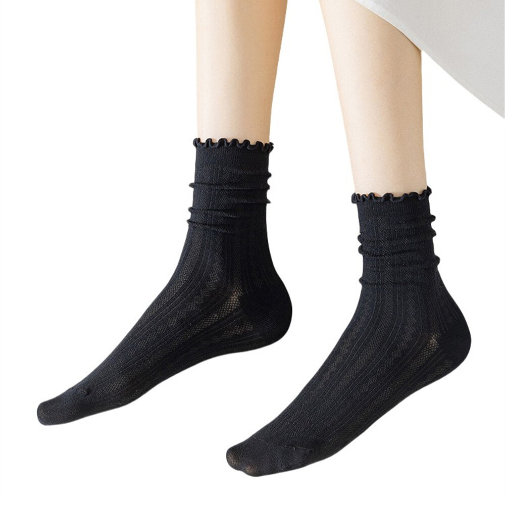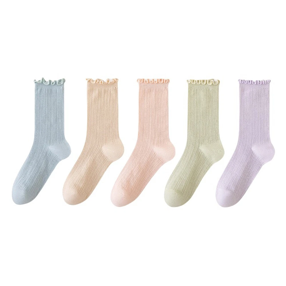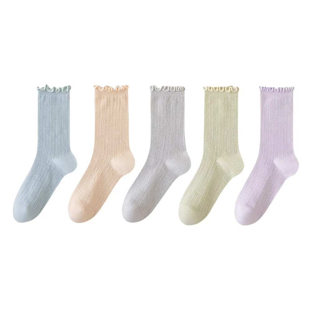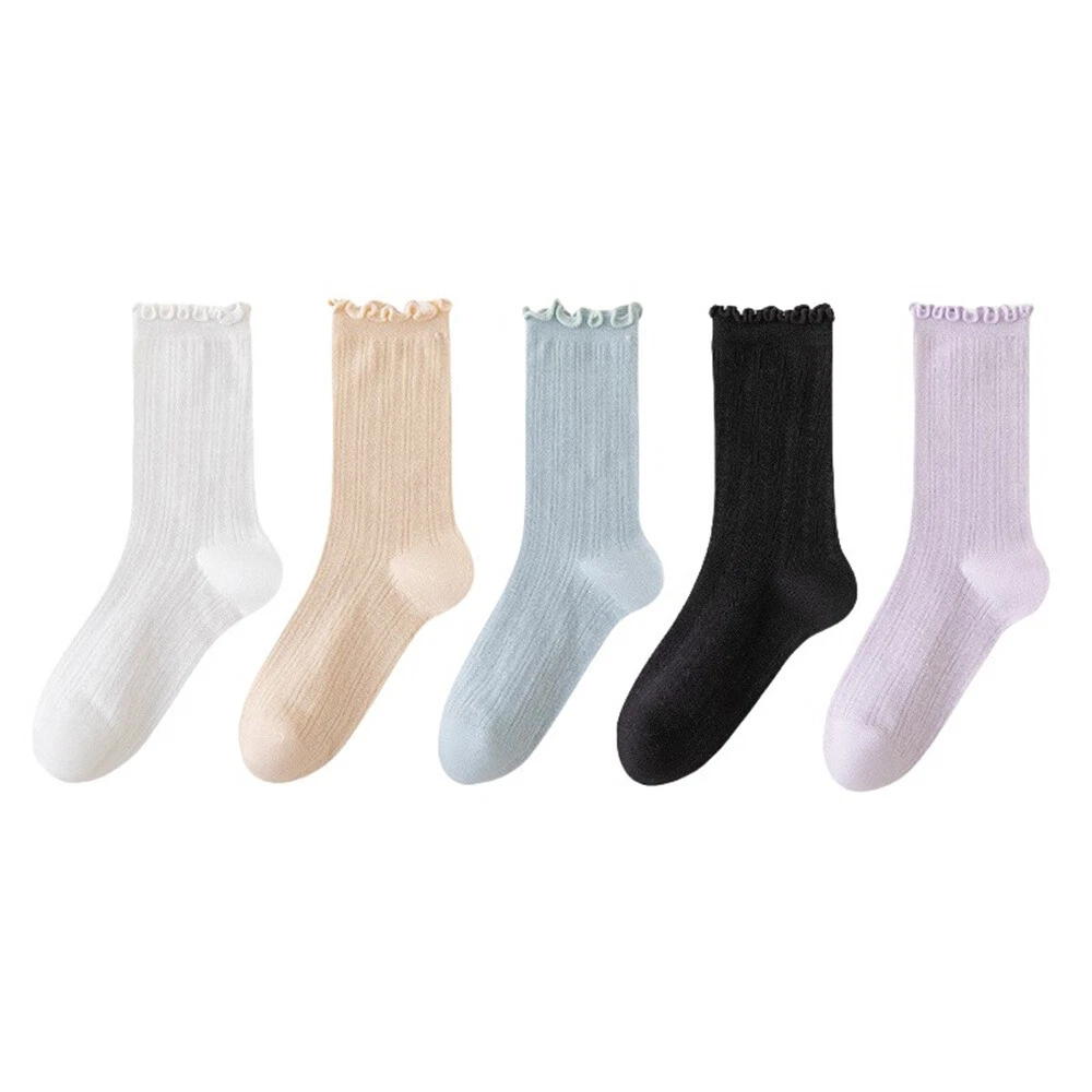 These socks are so cute and comfy! The ruffle edge adds a stylish touch, and the breathable cotton blend keeps my feet cool. Perfect for everyday wear—soft, stretchy, and true to size. Love the 5-pair set for mixing and matching. Super fast shipping too! Highly recommend!