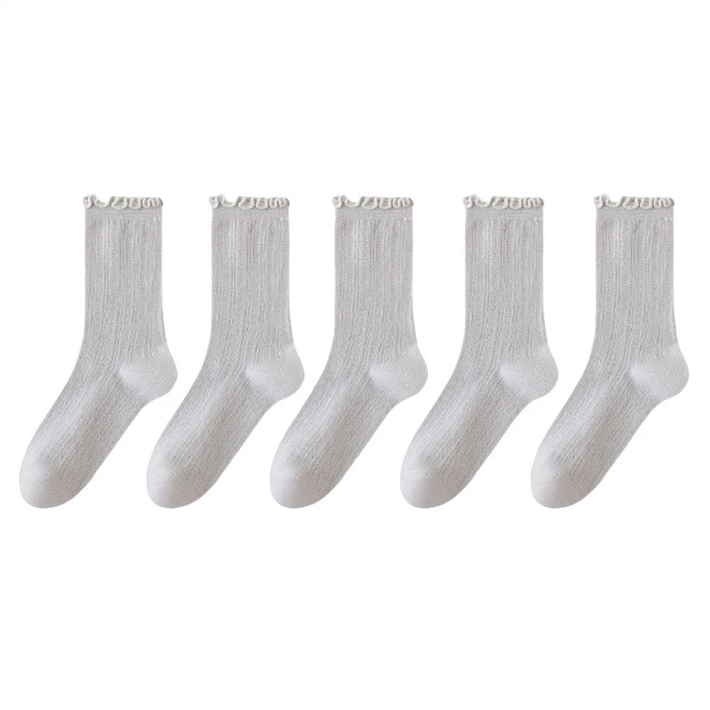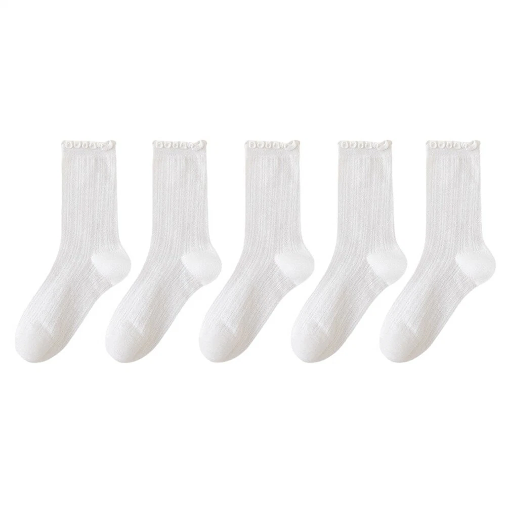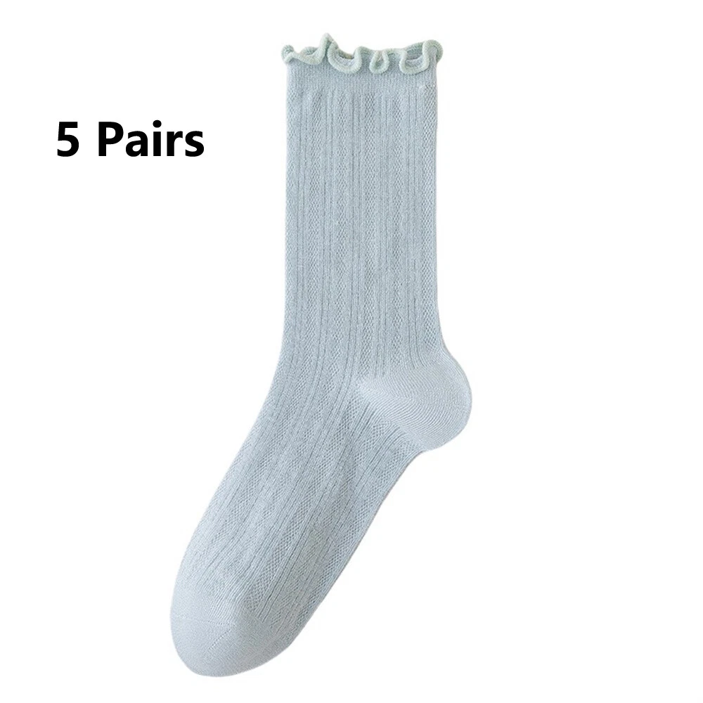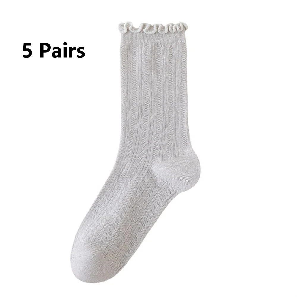 These socks are so cute and comfy! The ruffle edge adds a stylish touch, and the breathable cotton blend keeps my feet cool. Perfect for everyday wear—soft, stretchy, and true to size. Love the 5-pair set for mixing and matching. Super fast shipping too! Highly recommend!
