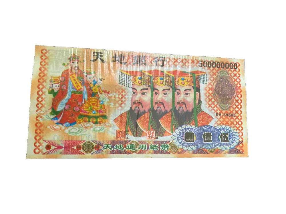 Up for sale are 10 pieces of £10 Chinese Joss Paper Hell Bank Note. These notes are perfect for those who believe in Feng Shui and would like to bring good luck and prosperity into their lives. The notes are in UNC condition, ready to be used for offerings to ancestors or spirits. Each note features intricate designs and symbols that represent wealth and success. The denomination of each note is £10, making it a great addition to any collection of banknotes. These notes are from Asia and are a unique piece of history that can be yours today. Don't miss out on this opportunity to own a piece of cultural significance.