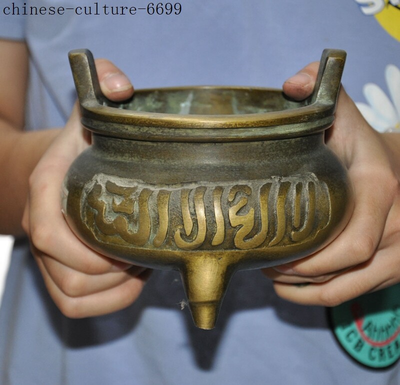 Here is an Marked Marked Old Chinese bronze Buddhism Islamic text joss Incense Burner censer , It is in good condition, and was created by skilled craftsmen in traditional style with fine handcrafts . This is a great piece of valuable collection, a valuable personal alter or a very good present. the handwork is very fine with incredible detailing. Don't miss out this chance to get it .Wish you good luck! Size:Height: 4.8 inch . Long: 5.2 inch . width: 5.2 inch Size:Height : 12 CM . Long: 13 cm . width: 13 cm Weight: 1.6 KG----included the weight of packing materials Materials: bronze Condition: Good condition Origin: China Shipping cost by Air Mail / EMS (7-15 days ) : $Free we only accept paypal if you have any problems on payment,please inform us via ebay message . 1.We ship regularly Monday to Saturday (Beijing Time) and will ship your items within 1-2 days upon payment received. If we can not ship your item on time for some special reason, we will inform you via ebay message. 2.We are not responsible for nor can we offer any specific advices on import fees, duty, customs, VAT or taxes that you may have to pay when your order arrives. 3.We ship the items according to your Paypal address except the special notes from buyers! Be sure that your Paypal address is correct when you buy the items in ebay. We do not take responsibility for item loss due to wrong address. 4.Estimated delivery time: Shipping may be influenced by holidays, events and some other uncertainties. If you dislike the seemingly long shipping time, please think carefully to bid or buy the item. We do not want to get a negative or neutral or low DSR score because of shipping time. If you have special demand on shipping time, please inform me via ebay message. We want to give you a happy shopping experience, when you are not satisfied with our products, please contact us on EBAY, we are responsible seller, we will solve your problem, please believe us,thanks! If you're in any way dissatisfied with your purchase, let me know through "MY MESSAGES" or "Ask Seller Questions" or our mailbox. We will solve it for you. We are committed to ensuring that you are completely satisfied with every transaction. 100% Satisfaction guaranteed ! We will reply your mail with in 24 hours normally. Sometimes have a little delay due to the weekends or holidays. If you can't get our mail after 48 hours, please check your spam or contact to us via Ebay. B L AA DD Z In addition to contact us through eBay or you can send your message to our mailbox. Any question, please feel free to contact us, we will always do our best to serve you. Business Hours: Mon-Sat 9:00-17:30:00 (HongKong Time GMT+8:00)