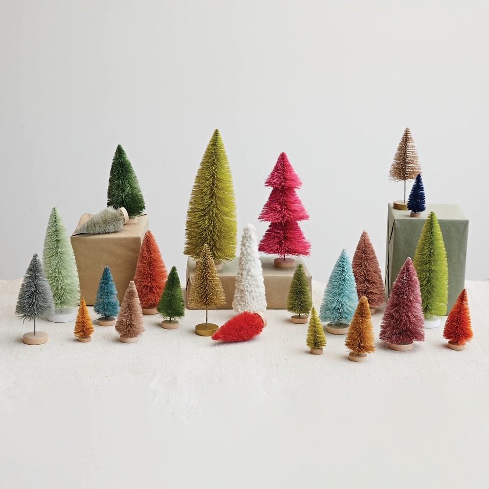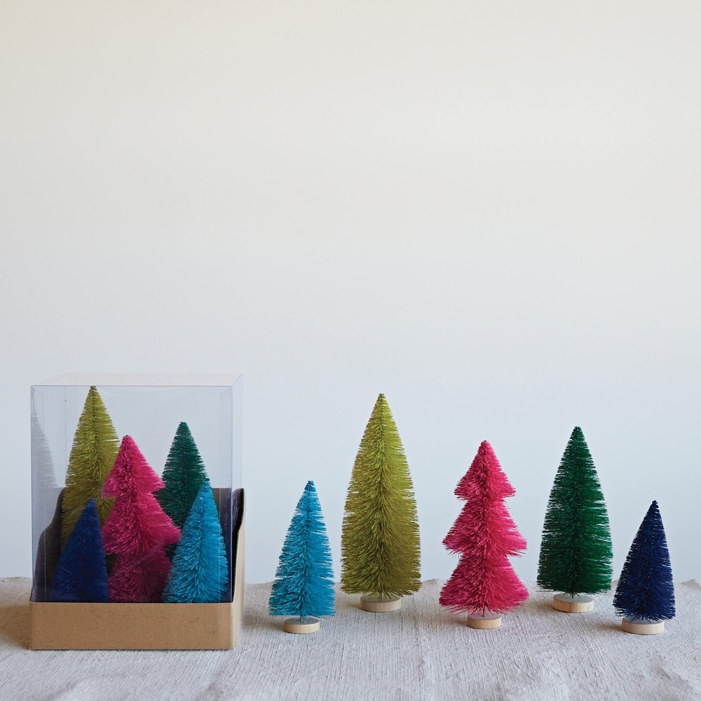 These sisal bottle brush trees are adorable! The vibrant colors and wooden bases add a charming touch to any holiday decor. Perfect for tabletops, wreaths, or DIY projects—great quality and so festive! Love how they come boxed for easy storage too. Highly recommend!