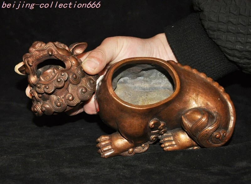 Here is an 5.6'' bronze wealth animal lion foo dog burn incense joss sticks burner censer , As you can see the image, It is in good condition, and was created by skilled craftsmen in traditional style with fine handcrafts . This is a great piece of valuable collection, a valuable personal alter or a very good present. the handwork is very fine with incredible detailing. Don't miss out this chance to get it .Wish you good lucky! Size: Height : 5.6 inch .Long:5.2 inch . Width:3.2 inch Size: Height:14 cm .Long:13 cm . Width:8 cm Weight: 0.8 K G ----included the weight of packing materials Materials: bronze Condition: Good condition Origin: China Shipping cost by Air Mail EMS (7--15 days ) : $Free D.C.E 4&xh we only accept pay pal if you have any problems on payment,please inform us via e bay message . 1.We ship regularly Monday to Saturday (Beijing Time) and will ship your items within 1-2 days upon payment received. If we can not ship your item on time for some special reason, we will inform you via e bay message. 2.We are not responsible for nor can we offer any specific adv ices on import fees, duty, customs, VAT or taxes that you may have to pay when your order arrives. 3.We ship the items according to your Pay pal address except the special notes from buyers! Be sure that your Pay pal address is correct when you buy the items in e bay. We do not take responsibility for item loss due to wrong address. 4.Estimated delivery time: Shipping may be influenced by holidays, events and some other uncertainties. If you dislike the seemingly long shipping time, please think carefully to bid or buy the item. We do not want to get a negative or neutral or low D SR score because of shipping time. If you have special demand on shipping time, please inform me via e bay message. We want to give you a happy shopping experience, when you are not satisfied with our products, please contact us on E BAY, we are responsible seller, we will solve your problem, please believe us,thanks! If you're in any way dissatisfied with your purchase, let me know through "MY MESSAGES" or "Ask Seller Questions" or our mailbox. We will solve it for you. We are committed to ensuring that you are completely satisfied with every transaction. 100% Satisfaction guaranteed ! We will reply your mail with in 24 hours normally. Sometimes have a little delay due to the weekends or holidays. If you can't get our mail after 48 hours, please check your spam or contact to us via E bay. In addition to contact us through eBay or you can send your message to our mailbox. Any question, please feel free to contact us, we will always do our best to serve you. Business Hours: Mon-Sat 9:00-17:30:00 (Hong Kong Time GMT+8:00)