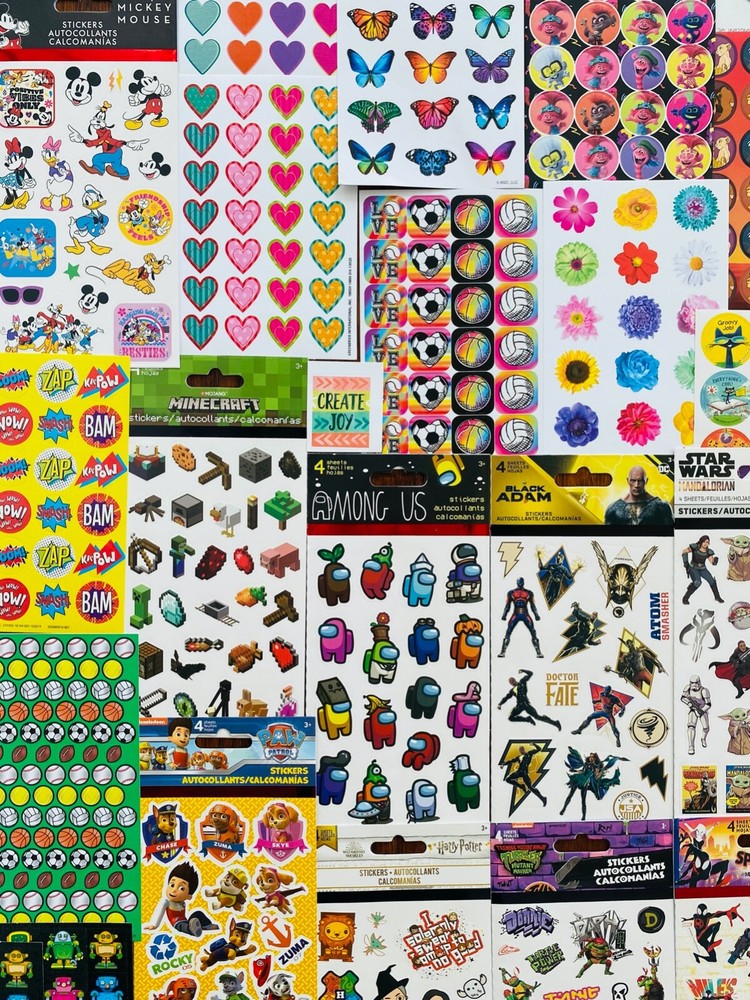 All stickers are BRAND NEW | Still in their original packaging! Popular Mixed Sticker Lot | The Ultimate Kit | Qty. 588+ Stickers | High Quality Only! Fun Assortment of Glossy, Laser, Foil, Epoxy, Puffy, Scrapbook, Cartoons, Bubble, Pop Up Stickers For Everyone & Every Occasion! You will receive 28+ Sticker Sheets of beautiful colorful assortment. The Pack will include 588+ Stickers overall! I have included a large variety of pictures of the assortment available. The pictures give you an idea of what you will be receiving. Please Note: You will not receive everything pictured. Please contact me with any special requests. This HUGE Variety of fun designs stickers can be used in parties, classroom, school and home, good for reward for students, potty training, adding inside a birthday card, game activities, entertaining toddlers, etc. Perfect Gifts for Kids & all Occasions: Can be given as a gift for kids, girls, boys, toddlers, teens, students, friends, and classmates, they will love it! Each package of stickers is a different style & theme with some lovely embellishments like rhinestones, ribbons, buttons and other 3D details that make these quality stickers look so unique!