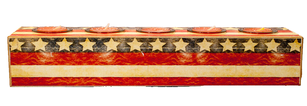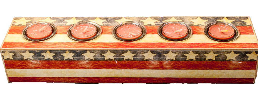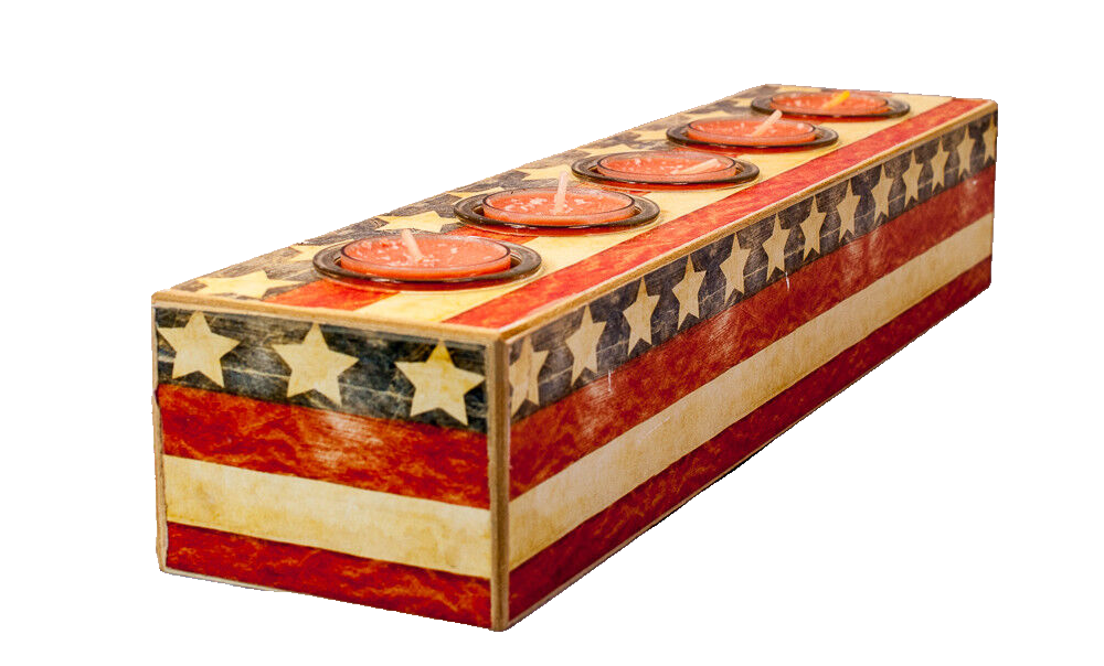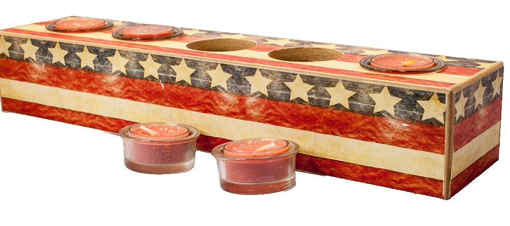 Five Tealight Set Ready for the Shipment An attractive 4 th of July 5 Tealight Candle Set in a Wood Base creative by Phoenix Creative Co. This five-tea light candle set is mounted on a long wooden box. This is stored, not displayed and in good condition. Measurements are : 14-inches in long, 2 -1/4 wide and 2 ½ in height Thanks for viewing and consideration of the purchase of the 4 th of July Tealight Set. A great purchase. Additional Information Payments: After payment is received, shipment will occur in one (1) business day accompanied by tracking information. Refund Information : We back purchases within 30 days, no questions asked return policy for a refund or merchandise credit. Return shipping is the responsibly of the customer. Thank you once again for your purchase. I would appreciate it if you could take a moment to leave feedback Thanks, Happy Shopping