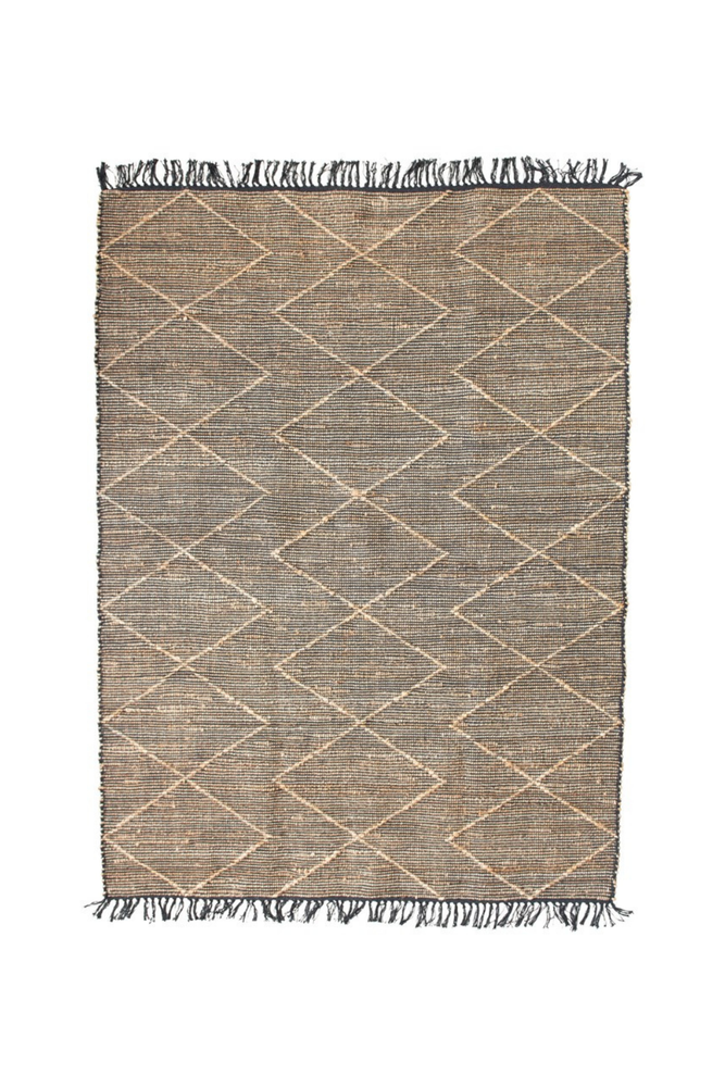 5'x7' Natural & Black Cotton & Jute Rug Diamond Pattern & Fringe Creative Co-op
