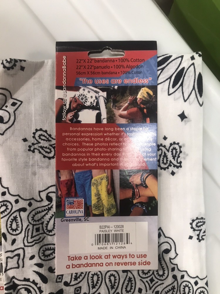 6 Carolina Creative Bandanna (White) Paisley Print 22" x 22" Hav-A-Hank. 6 pieces...