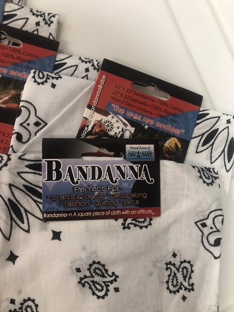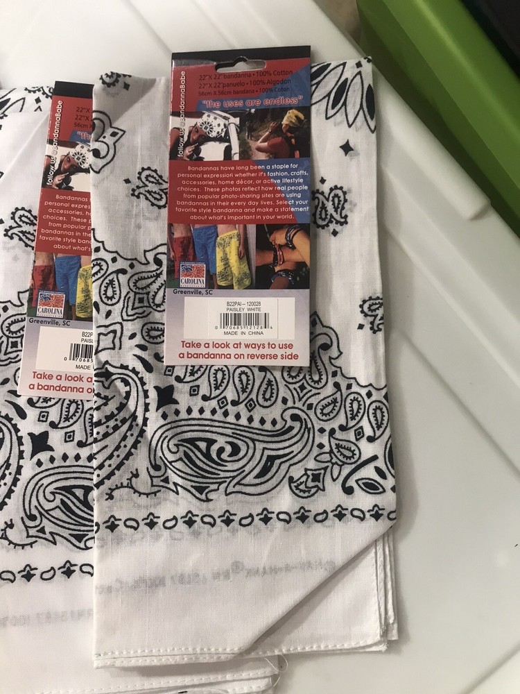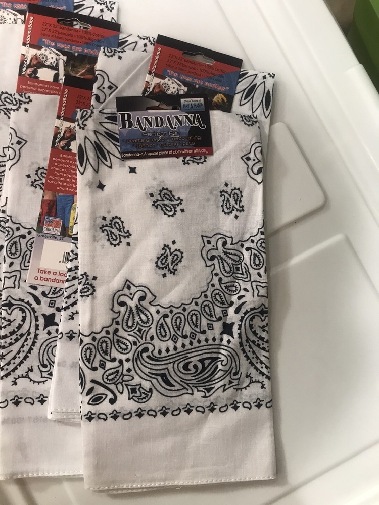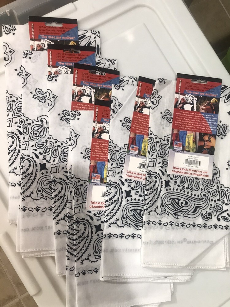 6 Carolina Creative Bandanna (White) Paisley Print 22" x 22" Hav-A-Hank. 6 pieces