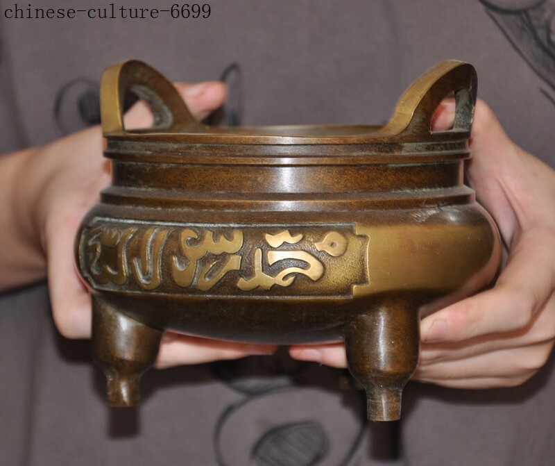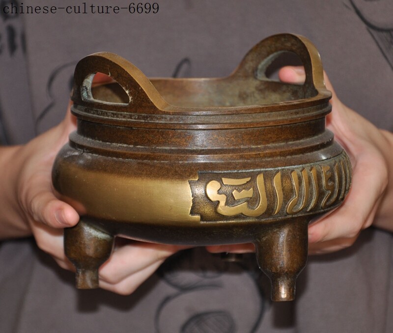 Here is an Marked Old Chinese bronze Buddhism Islamic text joss Incense Burner censer , As you can see the image, It is in good condition, and was created by skilled craftsmen in traditional style with fine handcrafts . This is a great piece of valuable collection, a valuable personal alter or a very good present. the handwork is very fine with incredible detailing. Don't miss out this chance to get it .Wish you good luck! Size:Height: 4.8 inch . Long: 6 inch . width: 6 inch Size:Height : 12 CM . Long: 15 cm . width: 15 cm Weight: 1.8 KG----included the weight of packing materials Materials: bronze Condition: Good condition Origin: China Shipping cost by Air Mail / EMS (7-15 days ) : $Free B L AJ DD we only accept paypal if you have any problems on payment,please inform us via ebay message . 1.We ship regularly Monday to Saturday (Beijing Time) and will ship your items within 1-2 days upon payment received. If we can not ship your item on time for some special reason, we will inform you via ebay message. 2.We are not responsible for nor can we offer any specific advices on import fees, duty, customs, VAT or taxes that you may have to pay when your order arrives. 3.We ship the items according to your Paypal address except the special notes from buyers! Be sure that your Paypal address is correct when you buy the items in ebay. We do not take responsibility for item loss due to wrong address. 4.Estimated delivery time: Shipping may be influenced by holidays, events and some other uncertainties. If you dislike the seemingly long shipping time, please think carefully to bid or buy the item. We do not want to get a negative or neutral or low DSR score because of shipping time. If you have special demand on shipping time, please inform me via ebay message. We want to give you a happy shopping experience, when you are not satisfied with our products, please contact us on EBAY, we are responsible seller, we will solve your problem, please believe us,thanks! If you're in any way dissatisfied with your purchase, let me know through "MY MESSAGES" or "Ask Seller Questions" or our mailbox. We will solve it for you. We are committed to ensuring that you are completely satisfied with every transaction. 100% Satisfaction guaranteed ! We will reply your mail with in 24 hours normally. Sometimes have a little delay due to the weekends or holidays. If you can't get our mail after 48 hours, please check your spam or contact to us via Ebay. In addition to contact us through eBay or you can send your message to our mailbox. Any question, please feel free to contact us, we will always do our best to serve you. Business Hours: Mon-Sat 9:00-17:30:00 (HongKong Time GMT+8:00)