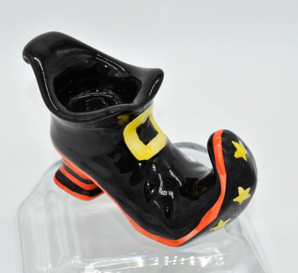 6" x 4" Witch Shoe Black Orange Yellow Porcelain Shoe condition is as seen in photos - small flea bite on heel - please look carefully ** MAKE AN OFFER! ** On some items we are unable to consider offers, while others WE CAN! This may be one. For more great items of all types, click here to visit my store AND be sure to click SAVE SELLER so you'll be alerted when we post new items - and see them before anyone else! If you ever have any issues with our items, please do contact us personally before any neutral or negative feedback. As you can see from our feedback reviews, we always do our best to take care of our fellow ebayers in a fair & reasonable manner!