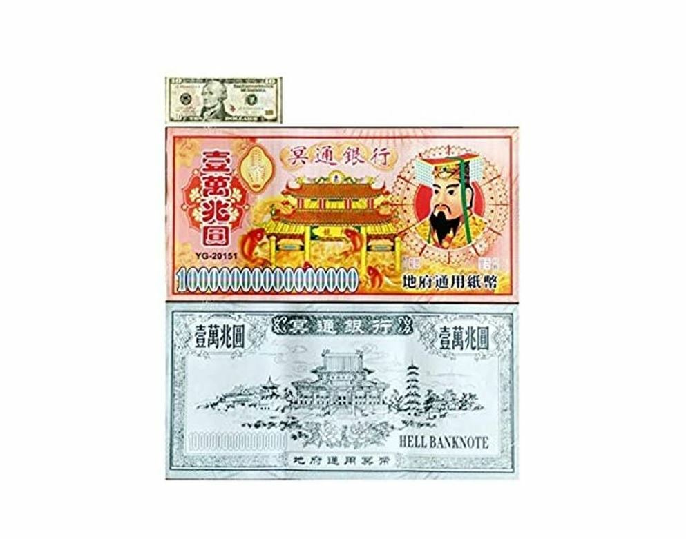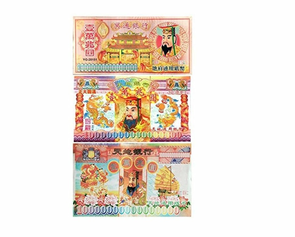 💘Joss paper money notes Chinese heaven hell money notes 💛 1 pack 60 sheets (3designs) 💚These hell bank notes feature an image of the Jade Emperor, the presiding monarch of heaven in Taoism. 🧡The notes are used to burn for the 'Hell Gods,' offering them monetary distraction so they will leave mortals at peace. They are also commonly burned as offerings for ancestors and requests for blessings of prosperity and good fortune. Report incorrect product in 💛 Suitable use on Funerals, Ancestor Birthdays and Death Anniversaries, Qingming Festival, Hungry Ghost Festival, Daily Life Why to Burn Joss Paper ✅ Put in more contemporary terms, burning joss paper provides the opportunity to make space and take time to remember the loved ones in your life. ✅ According to tradition, the Chinese believe that the deceased have needs similar to those in the natural world. Joss paper is burned at funerals and during important dates thereafter to help the deceased pay off debts, trade for goods and exist comfortably in the spirit world. When to Burn Joss Paper ✅ There are many occasions to burn joss paper throughout the year, and each instance carries a slightly different meaning and requirements. ✅For some people, burning joss paper is a near-daily spiritual practice; for others, it’s something that’s done only during holidays and important family gatherings. Here’s how to decide what’s right for you. ✅ Funerals ✅ Ancestor Birthdays and Death Anniversaries ✅ Qingming Festival ✅ Hungry Ghost Festival ✅ Daily Life ✅ Hell money is a form of joss paper printed to resemble legal tender bank notes. ✅ This faux money has been in use since at least the late 19th century and possibly much earlier. ✅ Early 20th century examples took the resemblance of minor commercial currency of the type issued by businesses across China until the mid-1940s. ✅ The notes are not an officially recognized currency or legal tender since their sole intended purpose is to be offered as burnt-offerings to the deceased as often practiced by the Chinese and several East Asian cultures. ✅ The identification of this type of joss paper as "hell bank notes" or "hell money" and singling them out is largely a western phenomenon, since these items are simply regarded as yet another form of joss paper in East Asian cultures and have no special name or status.