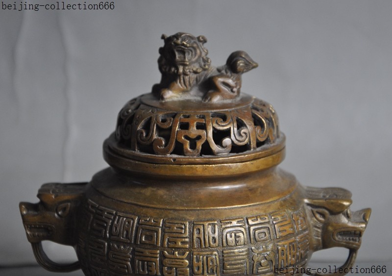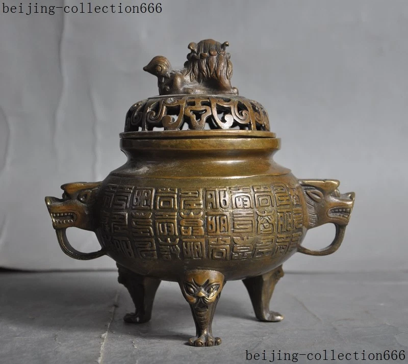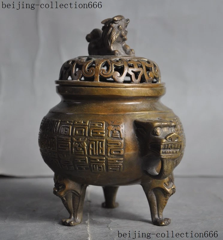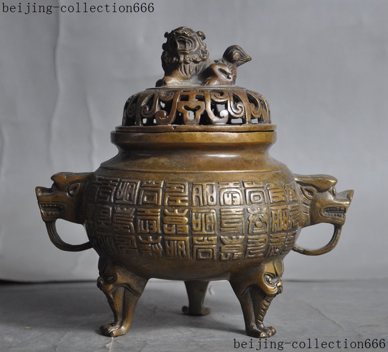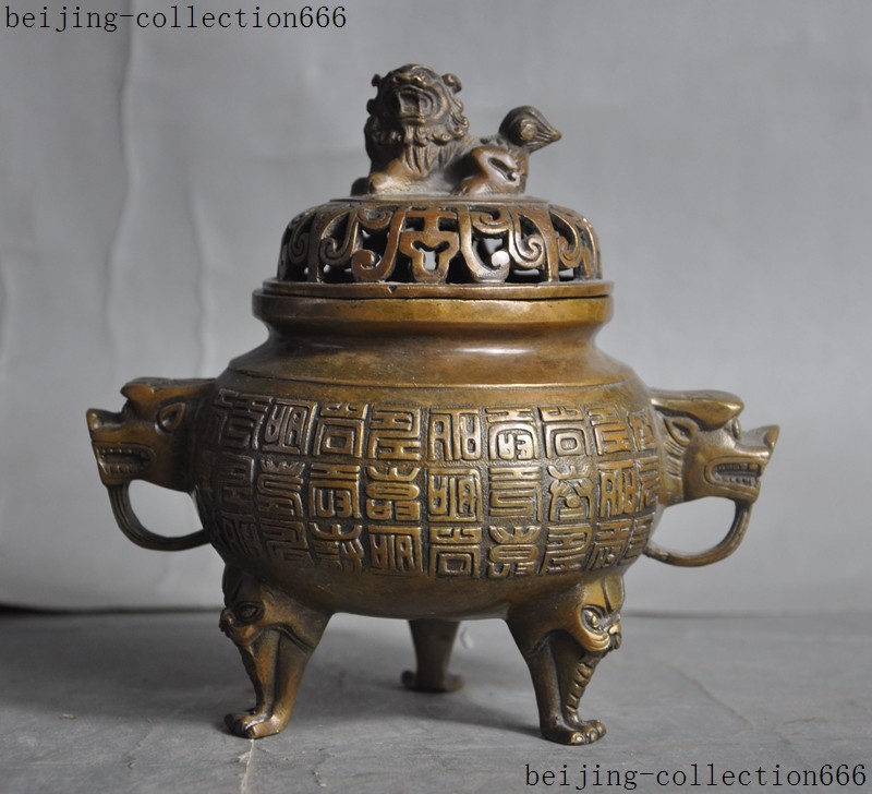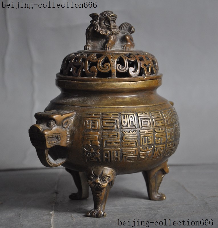 Here is an Old Chinese bronze temple Joss Dragon lion Statue tripod Incense Burner Censer, and was created by skilled craftsmen in traditional style with fine handcrafts. This is a great piece of valuable collection, a valuable personal alter or a very good present. Don't miss out this chance to get this statue and brings good luck to you! Size: Height: 6.4 inch .Long: 6 inch . breadth: 4 inch Size: Height: 16 cm .Long: 15 cm . breadth: 10 cm Weight: 1.8 KG----included the weight of packing materials Materials: bronze Condition: Good condition Origin: China Shipping cost by EMS Express Mail ( 7------15 days ) : $Free . Here is your chance to own an important empowered item now. We wish you all much good luck in obtaining this sacred one. Super nice! As you view in the images, it was Very nicely finished and complete with many fine details. Very particular and infrequent. It is a great piece of valuable collection or a very good present.Don't miss out this chance to get it .Wish you good luck! Shipping&insurance: Items will be shipped in 24 hous after payment cleared using Airmail service by China Post. It is International Delivery, So it may take a little time to arrive you, the estimated delivery time is 7-15 bussiness days. Please get in touch with us if you can't receive it in that period. Payment: We Only Accept Paypal on Ebay. For specific requirements, please feel free to contact us. Return Policies : If you are not satisfied, we will make an exchange or refund the payment within 2 weeks. The item you will receive is exactly same as the photo. If it is not same as the photo, I will refund all your payment. Please email me in time if you are dissatisfied with the items. I will try my best to resolve the problem. If don't want the item, please return it to me in good condition. Then I will refund the price of the item to you. Or I could replace it with another item of same value. Feedback: Feedback is important to all of us participating on the eBay community. We are always working hard for maintain high standards of excellence and strive for 100% customer satisfaction. So your POSITIVE FEEDBACK is very important. Thanks for your watching and happy bidding. 160925 Jlh