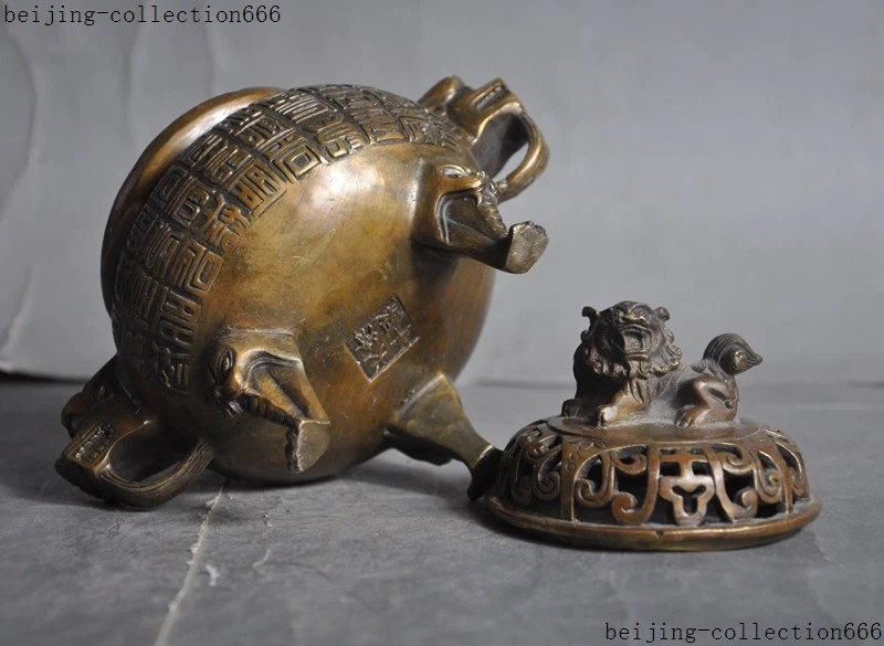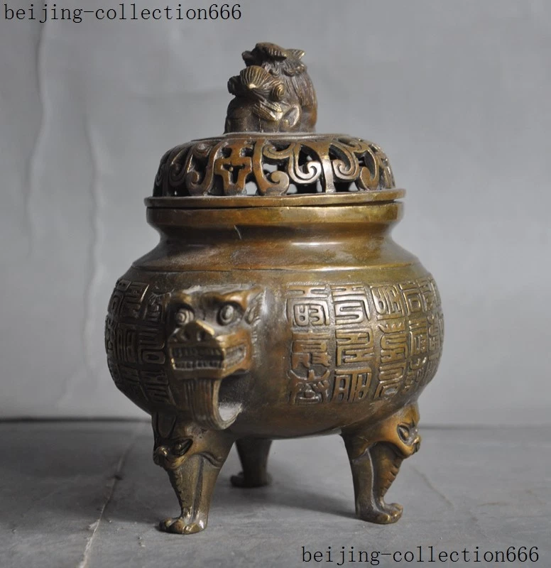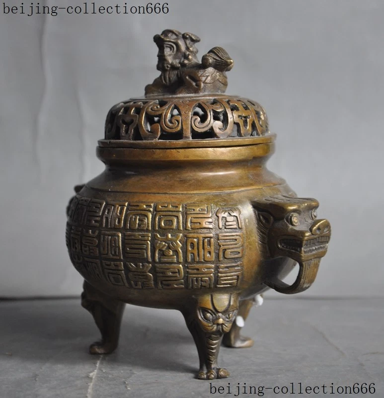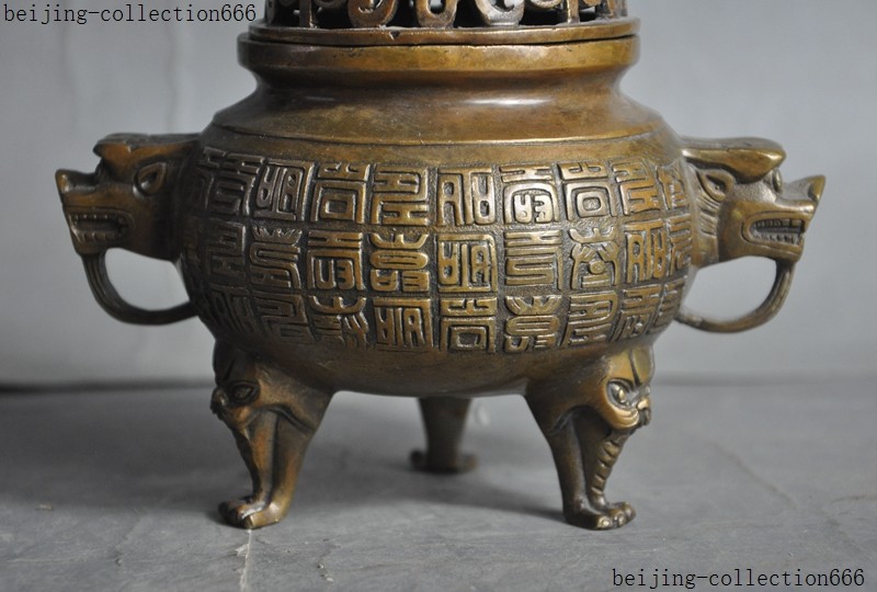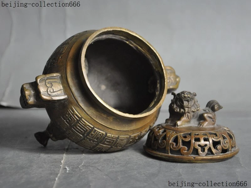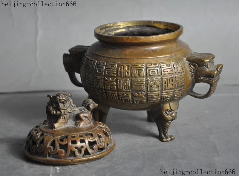 Here is an Old Chinese bronze temple Joss Dragon lion Statue tripod Incense Burner Censer, and was created by skilled craftsmen in traditional style with fine handcrafts. This is a great piece of valuable collection, a valuable personal alter or a very good present. Don't miss out this chance to get this statue and brings good luck to you! Size: Height: 6.4 inch .Long: 6 inch . breadth: 4 inch Size: Height: 16 cm .Long: 15 cm . breadth: 10 cm Weight: 1.8 KG----included the weight of packing materials Materials: bronze Condition: Good condition Origin: China Shipping cost by EMS Express Mail ( 7------15 days ) : $Free . Here is your chance to own an important empowered item now. We wish you all much good luck in obtaining this sacred one. Super nice! As you view in the images, it was Very nicely finished and complete with many fine details. Very particular and infrequent. It is a great piece of valuable collection or a very good present.Don't miss out this chance to get it .Wish you good luck! Shipping&insurance: Items will be shipped in 24 hous after payment cleared using Airmail service by China Post. It is International Delivery, So it may take a little time to arrive you, the estimated delivery time is 7-15 bussiness days. Please get in touch with us if you can't receive it in that period. Payment: We Only Accept Paypal on Ebay. For specific requirements, please feel free to contact us. Return Policies : If you are not satisfied, we will make an exchange or refund the payment within 2 weeks. The item you will receive is exactly same as the photo. If it is not same as the photo, I will refund all your payment. Please email me in time if you are dissatisfied with the items. I will try my best to resolve the problem. If don't want the item, please return it to me in good condition. Then I will refund the price of the item to you. Or I could replace it with another item of same value. Feedback: Feedback is important to all of us participating on the eBay community. We are always working hard for maintain high standards of excellence and strive for 100% customer satisfaction. So your POSITIVE FEEDBACK is very important. Thanks for your watching and happy bidding. 160925 Jlh
