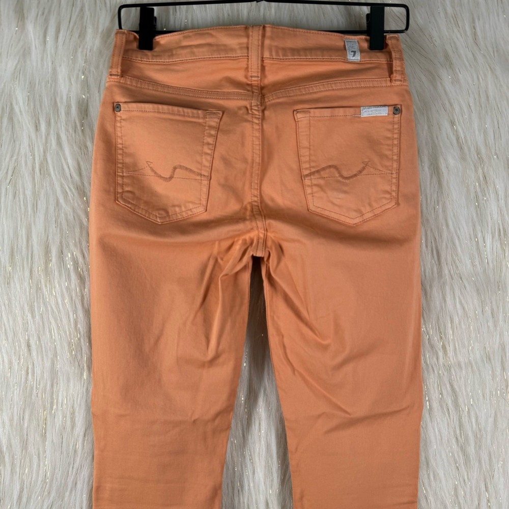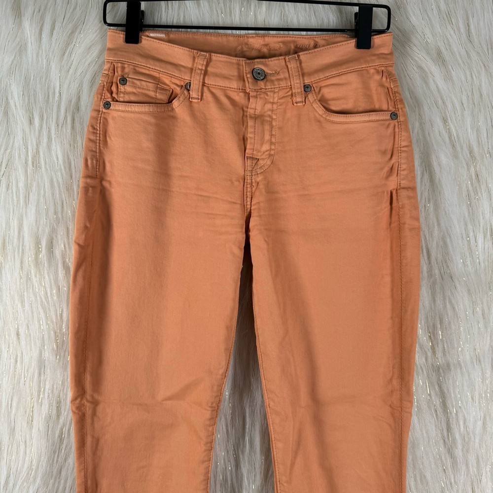<![CDATA[<div>7 For All Mankind Womens Jeans Orange Stretch Medium Wash Mid Rise 26 Brand: 7 For All Mankind Size: 26 Style: Jeans Color: Orange Waist: 28 Inseam: 26 Material: Cotton Blend Sold as pictured. Thanks for looking! Measurements are pictured. Trusted seller with thousands of happy customers. Smoke free, hypoallergenic pet home. Each item is packaged with care and shipped promptly. This listing was easily created using the SellHound Posting App!