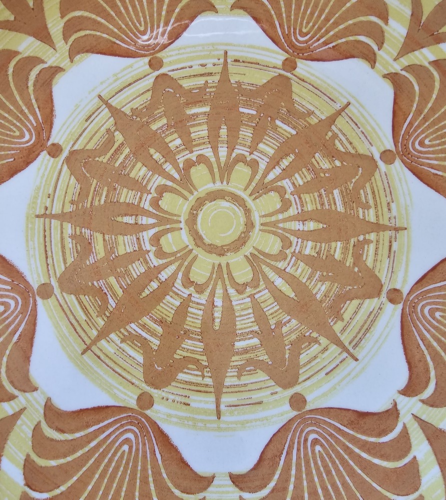 70's Midcentury Orange and Yellow Serving Platter , No makers mark, It is Royal-Ironstone Made in USA. Excellent condition. DIMENSIONS : 11.75ʺW × 11.75ʺD × 1ʺHSTYLES
