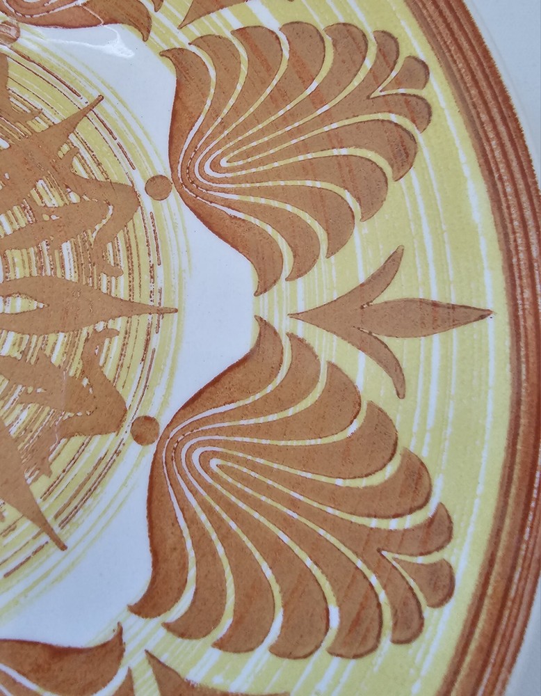 70's Midcentury Orange and Yellow Serving Platter , No makers mark, It is Royal-Ironstone Made in USA. Excellent condition. DIMENSIONS : 11.75ʺW × 11.75ʺD × 1ʺHSTYLES...