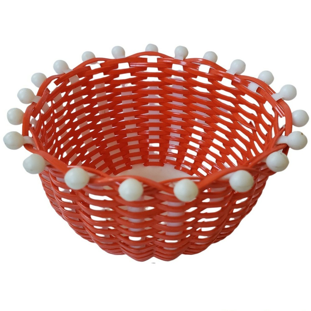 70's MOD S&S Arts Crafts Miniature Orang Plastic Woven Basket Mid Century Home Decor Artisan Mini Plastic Basket 3"Hx4W"