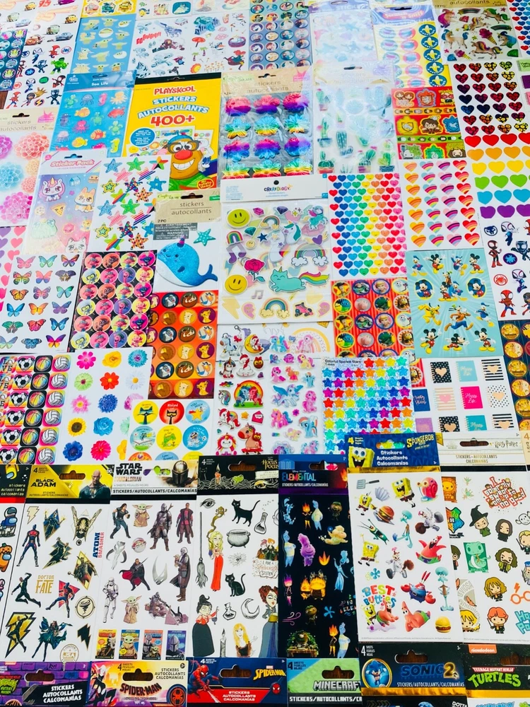 HUGE Mixed Sticker Lot | The Ultimate Kit | Qty. 775+ Stickers | High Quality Only! Fun Assortment of Puffy, Scrapbook, Cartoons, Bubble, Pop Up Stickers Packs For Everyone! You will receive 39+ Sticker Sheets of beautiful colorful assortment. The Pack will include 675+ Stickers overall! I have included a large variety of pictures of the assortment available. The pictures give you an idea of what you will be receiving. Please Note: You will not receive everything pictured. Please contact me with any special requests. This HUGE Variety of fun designs stickers can be used in parties, classroom, school and home, good for reward for students, potty training, adding inside a birthday card, game activities, entertaining toddlers, etc. Perfect Gifts for Kids & all Occasions: Can be given as a gift for kids, girls, boys, toddlers, teens, students, friends, and classmates, they will love it!