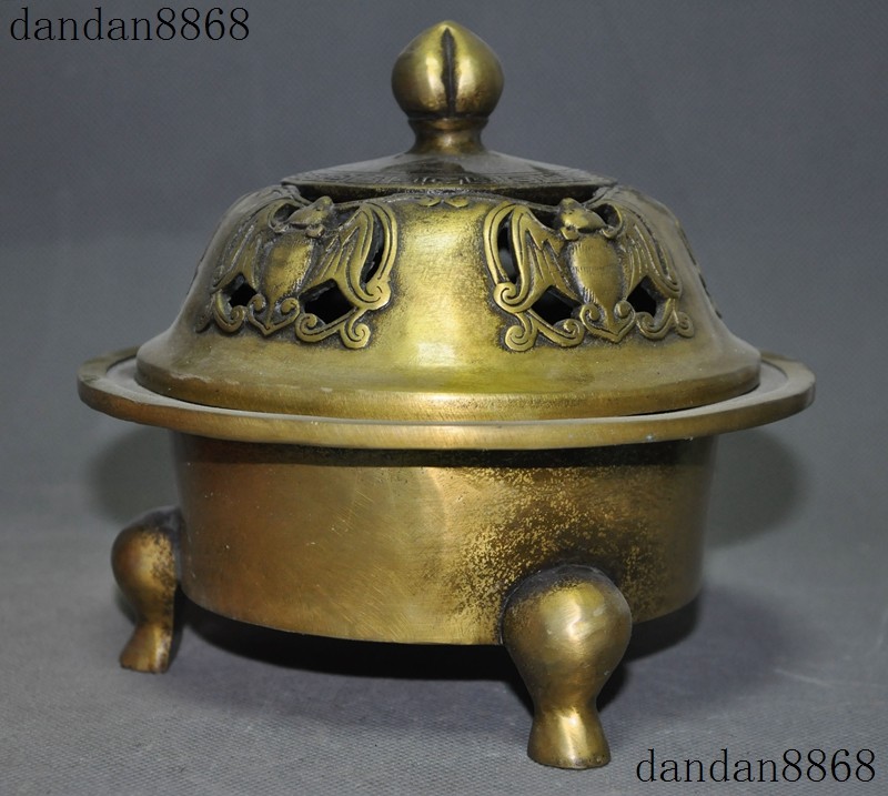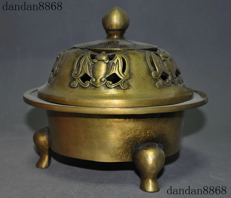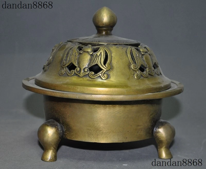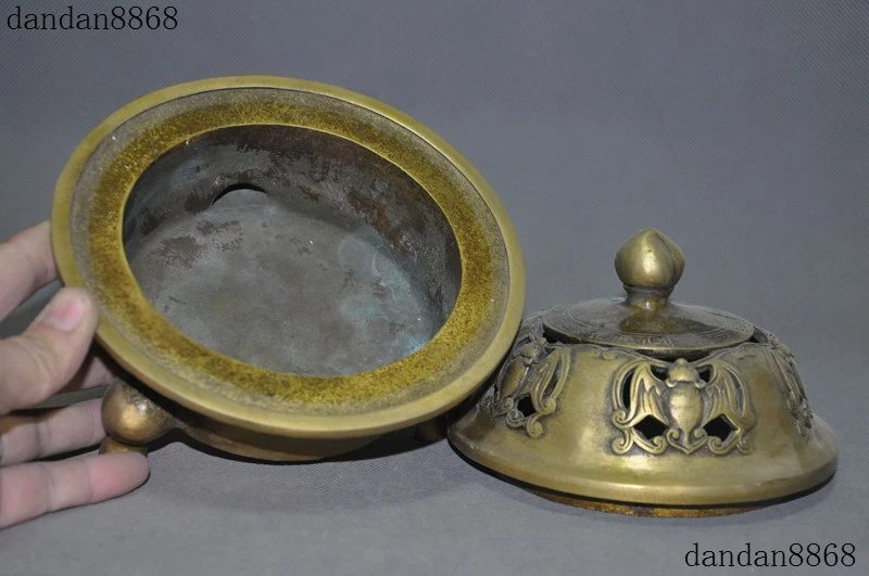 Here is an Marked Old Chinese Temple Joss Bronze Copper Bat Tripod Incense burner Censer , As you can see the image, It is in good condition, and was created by skilled craftsmen in traditional style with fine handcrafts . This is a great piece of valuable collection, a valuable personal alter or a very good present. the handwork is very fine with incredible detailing. Don't miss out this chance to get it .Wish you good luck! Size: Height: 6.4 inch .Long: 7 inch . breadth: 7 inch Size: Height: 16 cm .Long: 17.5 cm . breadth 17.5 cm Weight: 2.6 KG----included the weight of packing materials Materials: Bronze Copper Condition: Good condition Origin: China Shipping cost by EMS Express Mail ( 7------15 days ) : $Free we only accept paypal if you have any problems on payment,please inform us via ebay message . 1.We ship regularly Monday to Saturday (Beijing Time) and will ship your items within 1-2 days upon payment received. If we can not ship your item on time for some special reason, we will inform you via ebay message. 2.We are not responsible for nor can we offer any specific advices on import fees, duty, customs, VAT or taxes that you may have to pay when your order arrives. 3.We ship the items according to your Paypal address except the special notes from buyers! Be sure that your Paypal address is correct when you buy the items in ebay. We do not take responsibility for item loss due to wrong address. 4.Estimated delivery time: Shipping may be influenced by holidays, events and some other uncertainties. If you dislike the seemingly long shipping time, please think carefully to bid or buy the item. We do not want to get a negative or neutral or low DSR score because of shipping time. If you have special demand on shipping time, please inform me via ebay message. We want to give you a happy shopping experience, when you are not satisfied with our products, please contact us on EBAY, we are responsible seller, we will solve your problem, please believe us,thanks! If you're in any way dissatisfied with your purchase, let me know through "MY MESSAGES" or "Ask Seller Questions" or our mailbox. We will solve it for you. We are committed to ensuring that you are completely satisfied with every transaction. 100% Satisfaction guaranteed ! We will reply your mail with in 24 hours normally. Sometimes have a little delay due to the weekends or holidays. If you can't get our mail after 48 hours, please check your spam or contact to us via Ebay. In addition to contact us through eBay or you can send your message to our mailbox. Any question, please feel free to contact us, we will always do our best to serve you. Business Hours: Mon-Sat 9:00-17:30:00 (HongKong Time GMT+8:00) 20180125 jlh