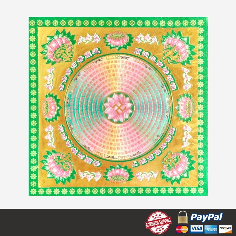 Incense paper differs slightly from joss paper, though serves the same purpose. Incense paper is a yellow coloured paper with a gold foil printed on it representing a gold tael or with a silver foil representing a silver tael. (A tael is a weight measurement similar to the Thai baht, part of the Chinese system of weights and the currency). Color/Style: Pink-Gold Lotus Condition: Brand New in Package Material: Rice Paper Size: 7.5 inch x 7.5 inch Weight: +-260g for 80pcs