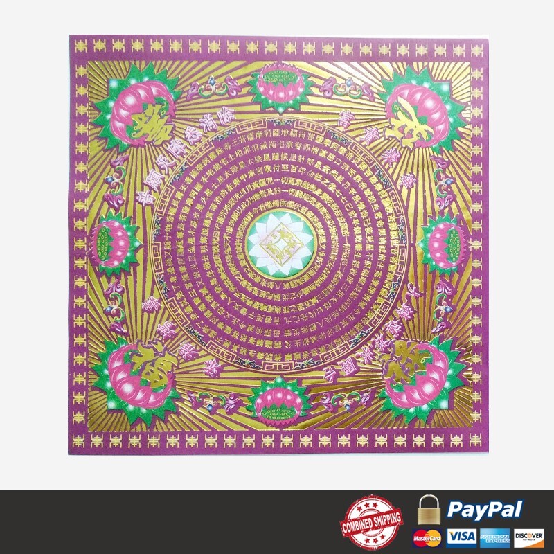 Incense paper differs slightly from joss paper, though serves the same purpose. Incense paper is a yellow coloured paper with a gold foil printed on it representing a gold tael or with a silver foil representing a silver tael. (A tael is a weight measurement similar to the Thai baht, part of the Chinese system of weights and the currency). Color/Style: Pink-Gold Lotus Condition: Brand New in Package Material: Rice Paper Size: 7.5 inch x 7.5 inch Weight: +-260g for 80pcs