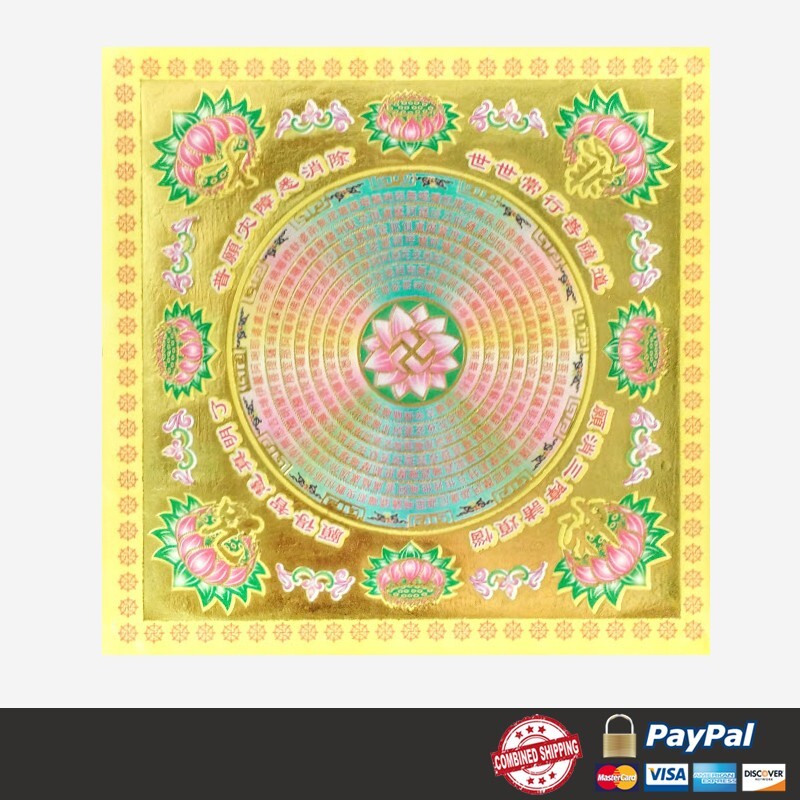 Incense paper differs slightly from joss paper, though serves the same purpose. Incense paper is a yellow coloured paper with a gold foil printed on it representing a gold tael or with a silver foil representing a silver tael. (A tael is a weight measurement similar to the Thai baht, part of the Chinese system of weights and the currency). Color/Style: Pink-Gold Lotus Condition: Brand New in Package Material: Rice Paper Size: 7.5 inch x 7.5 inch Weight: +-260g for 80pcs
