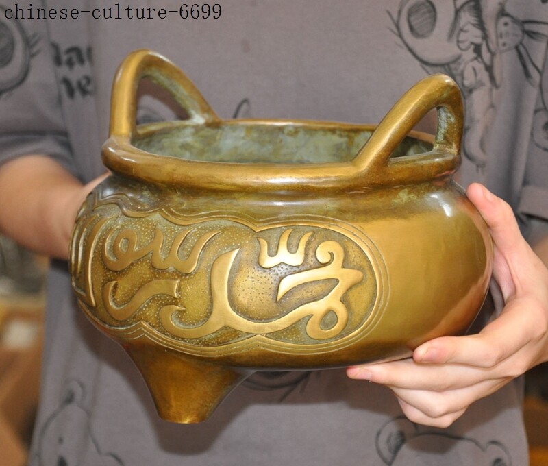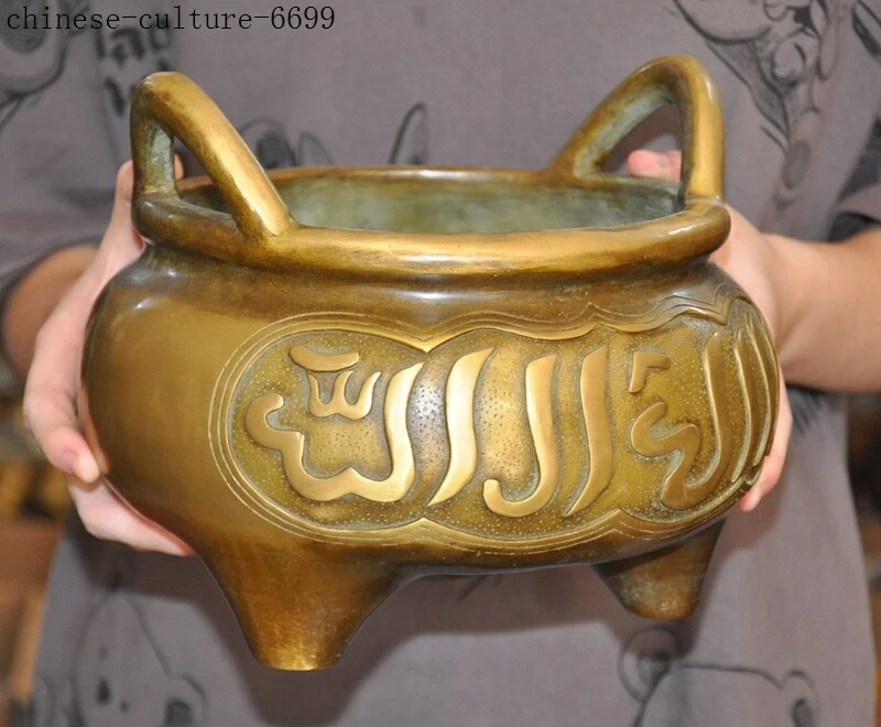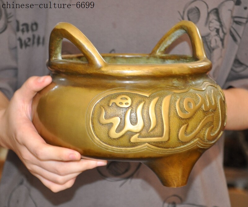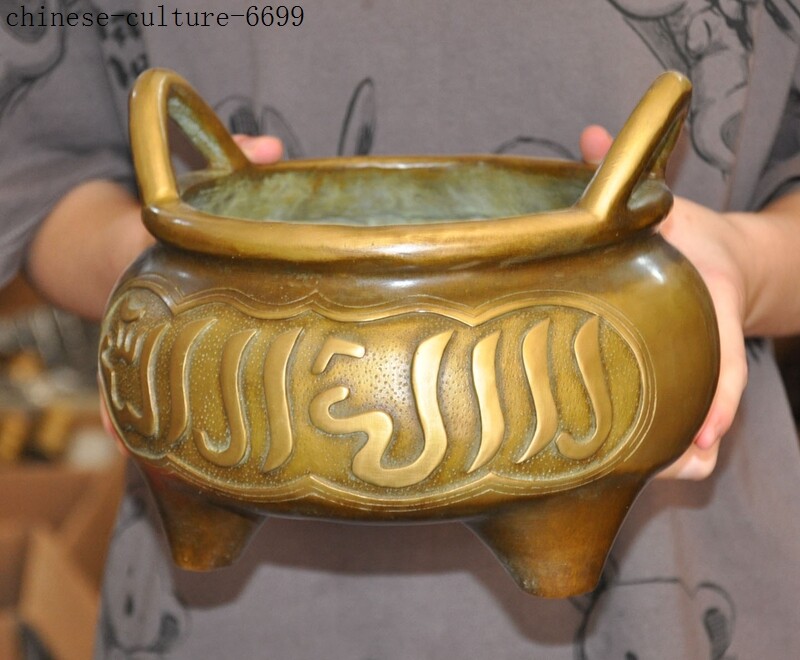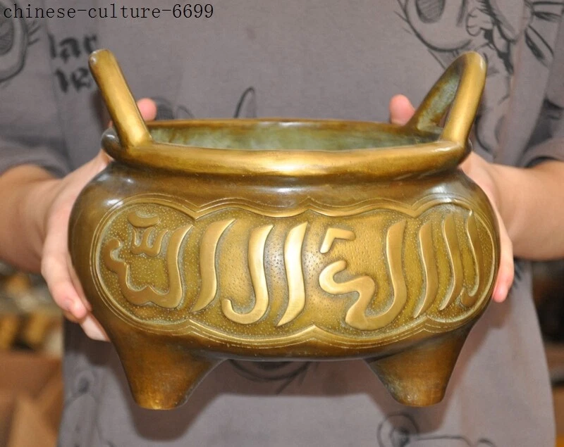 Here is an Marked Old Chinese bronze Buddhism Islamic text joss Incense Burner censer , As you can see the image, It is in good condition, and was created by skilled craftsmen in traditional style with fine handcrafts . This is a great piece of valuable collection, a valuable personal alter or a very good present. the handwork is very fine with incredible detailing. Don't miss out this chance to get it .Wish you good luck! Size:Height: 6.8 inch . Long: 8.4 inch . width: 8.4 inch Size:Height : 17 CM . Long: 21 cm . width: 21 cm Weight: 3 KG----included the weight of packing materials Materials: bronze Condition: Good condition Origin: China Shipping cost by Air Mail / EMS (7-15 days ) : $Free B L AJ DD we only accept paypal if you have any problems on payment,please inform us via ebay message . 1.We ship regularly Monday to Saturday (Beijing Time) and will ship your items within 1-2 days upon payment received. If we can not ship your item on time for some special reason, we will inform you via ebay message. 2.We are not responsible for nor can we offer any specific advices on import fees, duty, customs, VAT or taxes that you may have to pay when your order arrives. 3.We ship the items according to your Paypal address except the special notes from buyers! Be sure that your Paypal address is correct when you buy the items in ebay. We do not take responsibility for item loss due to wrong address. 4.Estimated delivery time: Shipping may be influenced by holidays, events and some other uncertainties. If you dislike the seemingly long shipping time, please think carefully to bid or buy the item. We do not want to get a negative or neutral or low DSR score because of shipping time. If you have special demand on shipping time, please inform me via ebay message. We want to give you a happy shopping experience, when you are not satisfied with our products, please contact us on EBAY, we are responsible seller, we will solve your problem, please believe us,thanks! If you're in any way dissatisfied with your purchase, let me know through "MY MESSAGES" or "Ask Seller Questions" or our mailbox. We will solve it for you. We are committed to ensuring that you are completely satisfied with every transaction. 100% Satisfaction guaranteed ! We will reply your mail with in 24 hours normally. Sometimes have a little delay due to the weekends or holidays. If you can't get our mail after 48 hours, please check your spam or contact to us via Ebay. In addition to contact us through eBay or you can send your message to our mailbox. Any question, please feel free to contact us, we will always do our best to serve you. Business Hours: Mon-Sat 9:00-17:30:00 (HongKong Time GMT+8:00)