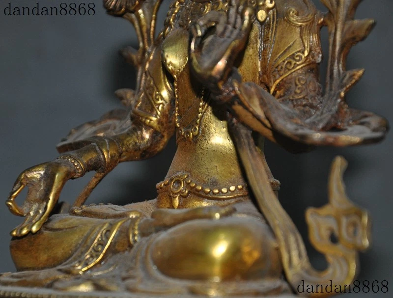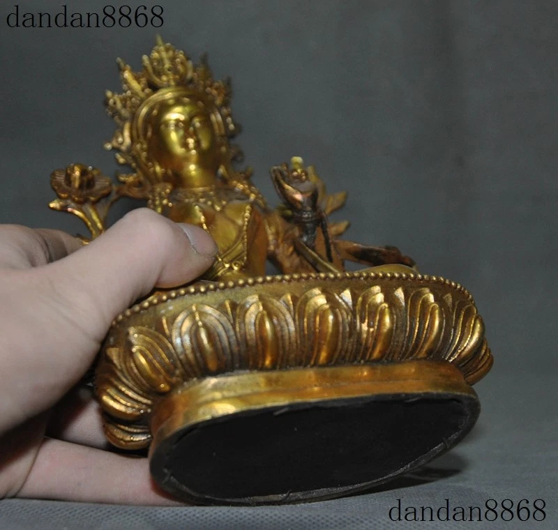 Here is an Old Tibet Buddhism Joss Bronze Gilt White Tara Guanyin KuanYin Goddess Statue , As you can see the image, It is in good condition, and was created by skilled craftsmen in traditional style with fine handcrafts . This is a great piece of valuable collection, a valuable personal alter or a very good present. the handwork is very fine with incredible detailing. Don't miss out this chance to get it .Wish you good luck! Size: Height: 8.4 inch .Long: 6 inch . breadth: 3.4 inch Size: Height: 21 cm .Long: 15 cm . breadth 8.5 cm Weight: 1.8 KG----included the weight of packing materials Materials: Bronze Gilt Condition: Good condition Origin: China Shipping cost by EMS Express Mail ( 7------15 days ) : $Free we only accept paypal if you have any problems on payment,please inform us via ebay message . 1.We ship regularly Monday to Saturday (Beijing Time) and will ship your items within 1-2 days upon payment received. If we can not ship your item on time for some special reason, we will inform you via ebay message. 2.We are not responsible for nor can we offer any specific advices on import fees, duty, customs, VAT or taxes that you may have to pay when your order arrives. 3.We ship the items according to your Paypal address except the special notes from buyers! Be sure that your Paypal address is correct when you buy the items in ebay. We do not take responsibility for item loss due to wrong address. 4.Estimated delivery time: Shipping may be influenced by holidays, events and some other uncertainties. If you dislike the seemingly long shipping time, please think carefully to bid or buy the item. We do not want to get a negative or neutral or low DSR score because of shipping time. If you have special demand on shipping time, please inform me via ebay message. We want to give you a happy shopping experience, when you are not satisfied with our products, please contact us on EBAY, we are responsible seller, we will solve your problem, please believe us,thanks! If you're in any way dissatisfied with your purchase, let me know through "MY MESSAGES" or "Ask Seller Questions" or our mailbox. We will solve it for you. We are committed to ensuring that you are completely satisfied with every transaction. 100% Satisfaction guaranteed ! We will reply your mail with in 24 hours normally. Sometimes have a little delay due to the weekends or holidays. If you can't get our mail after 48 hours, please check your spam or contact to us via Ebay. In addition to contact us through eBay or you can send your message to our mailbox. Any question, please feel free to contact us, we will always do our best to serve you. Business Hours: Mon-Sat 9:00-17:30:00 (HongKong Time GMT+8:00) 20171111XJGWYG