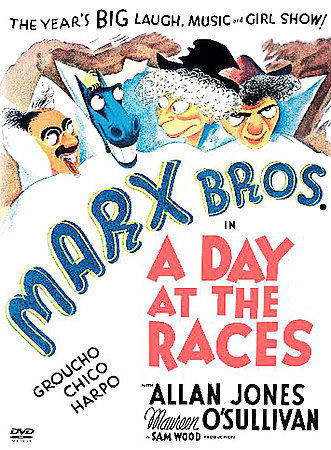 Maureen O'Sullivan plays Judy Standish, a woman whose sanitarium is about to be foreclosed upon. Standish begs for help from rich patient Emily Updike, played by the hysterically funny Maragaret Dumont. Updike agrees to save the sanitarium but demands that her favorite medical practitioner, Dr. Hugo Hackenbush (Groucho Marx), be placed in charge. Hackenbush is a horse doctor by trade. Thus begins another wacky, silly adventure with the kings of comedy, Groucho, Chico, and Harpo Marx. Chico, a racing tipster, and Harpo, a jockey, find faith in Hackenbush when they discover that the good doctor is a fraud, so the trio sets off to defeat the nasty bankers who continue to scheme for the sanitarium, while also pushing forward the incipient love affair between Standish and struggling singer Gil Stewart (Allan Jones). Also included is the horse race for which the film is named, a carnival of bathing beauties, and some very odd musical numbers.