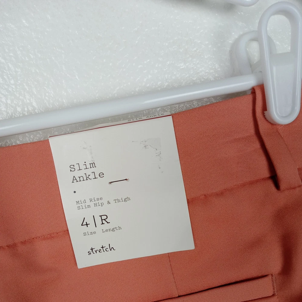 A New Day women's pants, mid rise, ankle, coral orange type color, slim. There is a very faint mark at hem back of right leg, which looks like it would wash out. Lying flat: Waist 15 inches Inseam 27 inches Rise 9 inches Hips 20 inches All orders are shipped the same or next business day after cleared payment.