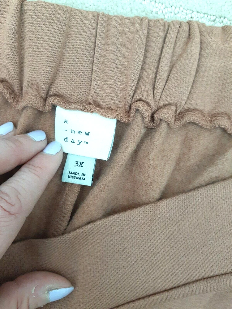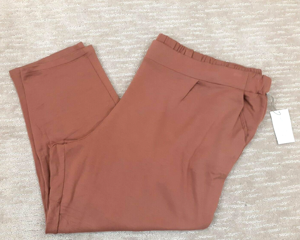 A New Day Womens Sz 3X Salmon Orange Mid-Rise Straight Leg French Terry Pants NWT - Fantastic pair of salmon/terracotta orange toned pull on sweatpants from a great brand! Very soft and cozy modal blend. Flat front waist and elastic in the back. Pockets. Lots of stretch. Perfect for casual, lounge and active wear! Waist measures 48 inches (not stretched) and inseam measures 26 1/2 inches. New with tag. No major imperfections such a rips, tears or stains. From a smoke free home. SKU 3818