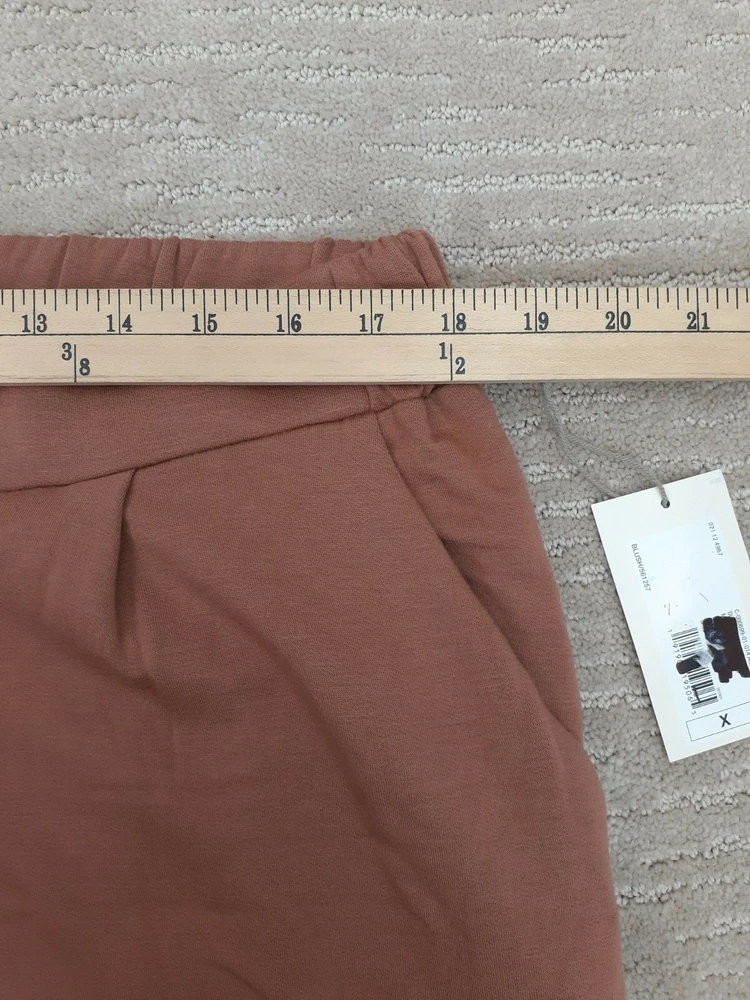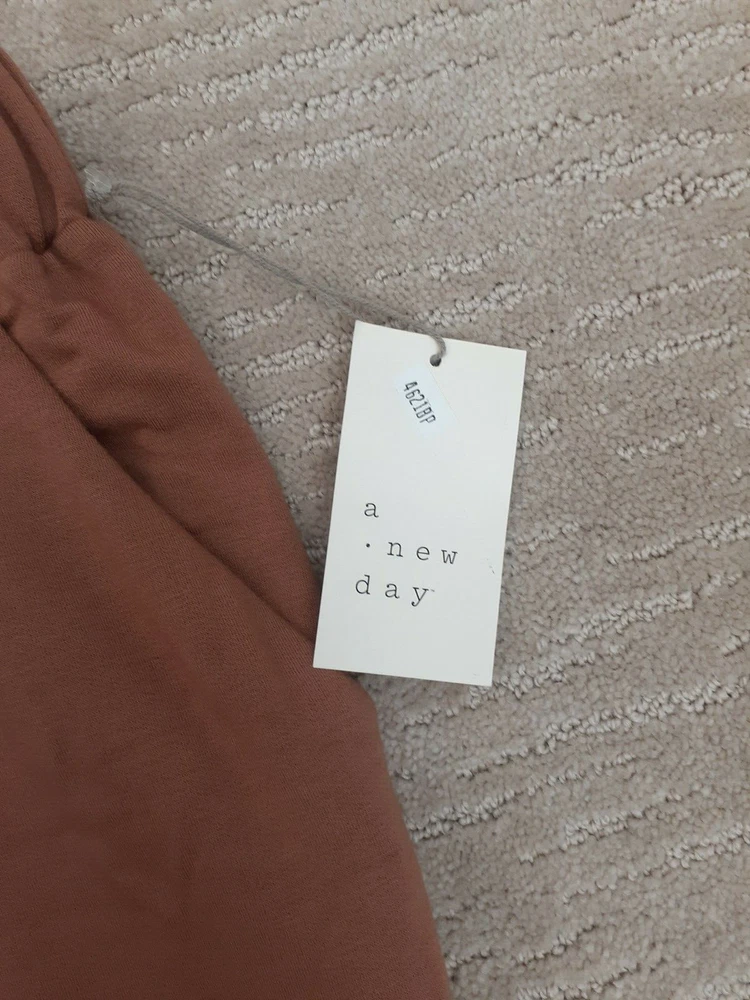 A New Day Womens Sz X Salmon Orange Mid-Rise Straight Leg French Terry Pants NWT - Fantastic pair of salmon/terracotta orange toned pull on sweatpants from a great brand! Very soft and cozy modal blend. Flat front waist and elastic in the back. Pockets. Lots of stretch. Perfect for casual, lounge and active wear! Waist measures 36 inches (not stretched) and inseam measures 28 inches. Has one super small imperfection at the top waistband (see last photo). New with tag. No major imperfections such a rips, tears or stains. From a smoke free home. SKU 3817