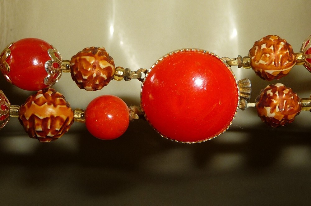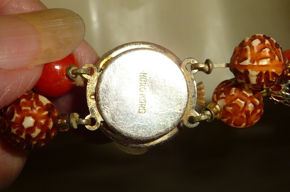 A5#61X **** 10" LONG IN HALF ** SEE PHOTOS *** HONG KONG MARKED ** PRE OWNED *** BUYING AS IS *** OUT OF AN ESTATE **** SELLING AS I FOUND IT *** I KNOW NOTHING ABOUT THIS ITEM EXCEPT FOR WHAT I SEE *** vintage costume NECKLACE *** *** SEE PHOTOS FOR DESCRIPTION AND CONDITION OF THIS ITEM *** ALL SIZES ARE APPROX *** SOME pictures were taking with a flash and appear brighter then they appear in person PRE OWNED USED SUBJECT TO IMPERFECTIONS I MAY HAVE MISSED AGE DISCOLORING SPOTS AND WEAR & AGE SCENT ) ( and stone discoloring if any ) *** IN good AS IS CONDITION *** SUBJECT TO MISSING STONES DIRT SPOTS SCUFFS SCRATCHES WEAR FADING DISCOLORING AGE SCENT ETC & MINOR IMPERFECTIONS I MAY HAVE MISSED PRE OWNED *** SEE PHOTOS FOR EXAMPLES OF WHATS IN THIS LOT and CONDITION === this is vintage and is subject to imperfections and discoloring +++ I DO COMBINE SHIPPING WITH JUST ONE $3.00 HANDLING FEE +++ NOTE MY $3.00 handling fee which appears on shipping cost on invoice DOES NOT APPEAR ON POSTAL SHIPPING LABEL +++ MULTIPLE PURCHASE MAY CHANGE SHIPPING FEE DUE TO CHANGE IN WEIGHT AND SIZE OF package *** SEE MY OTHER LISTINGS at lib_kat