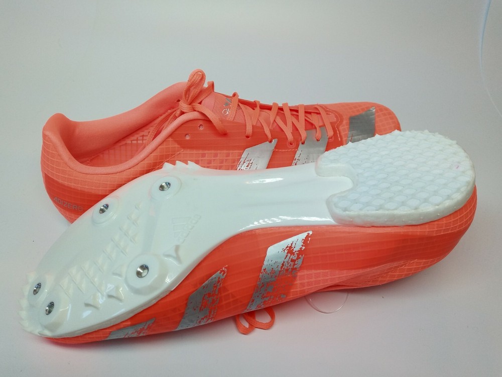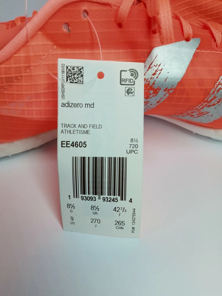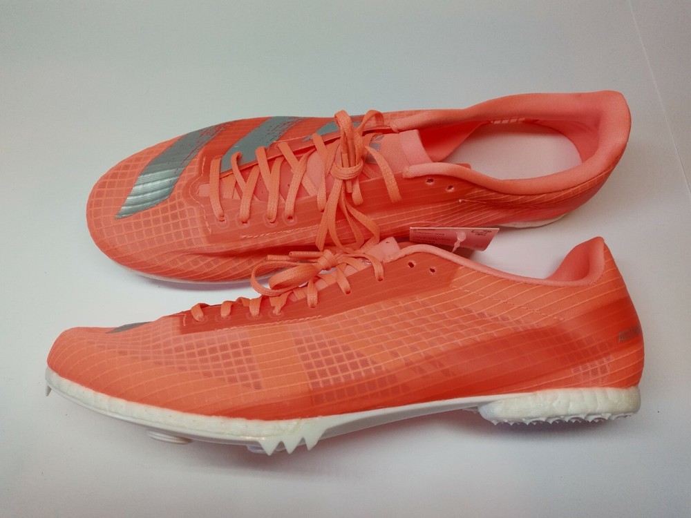 ADIDAS Adizero Mid Distance Spikes Mens Running Boost Neon Orange EE4605 size 9. Condition is new with tags. Designed with a narrow Boost midsole, lightweight breathable upper, and toe teeth to really dig in and push off, these spikes are the perfect fit for middle distance running. Includes a full set of spikes and wrench. Shipped with USPS Priority Mail.