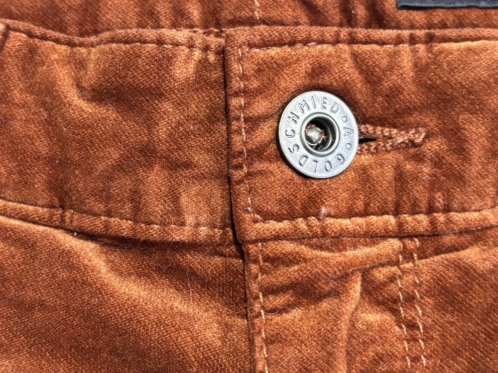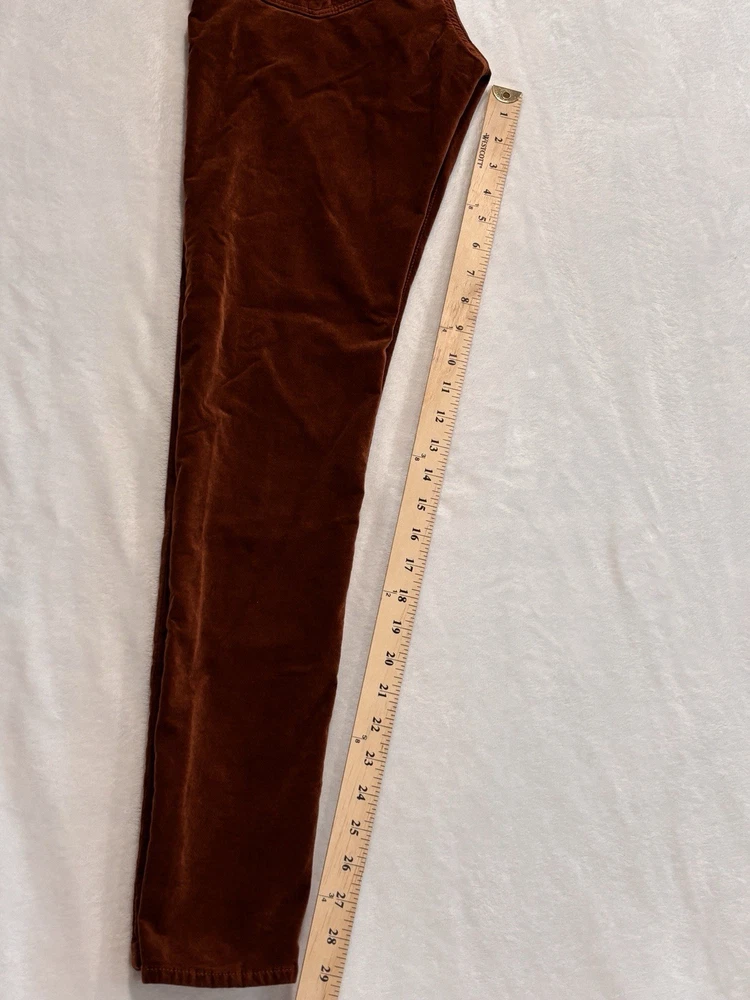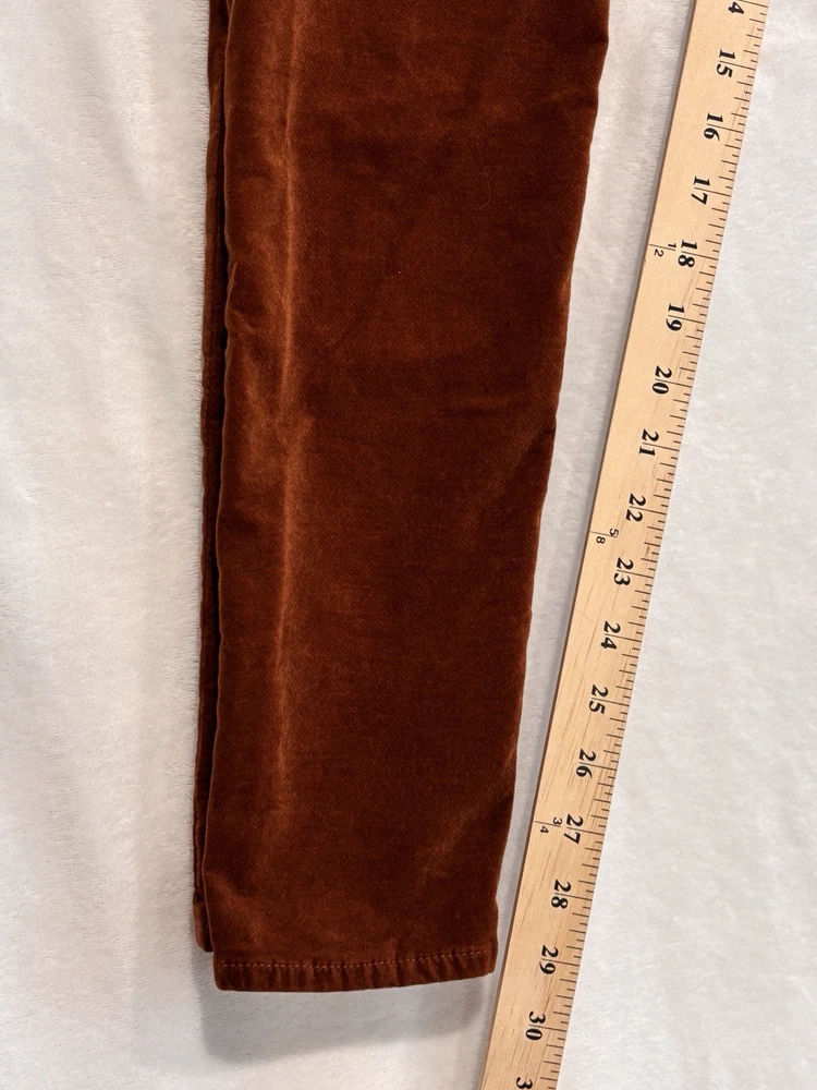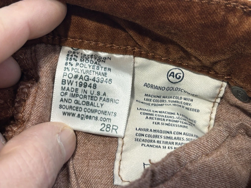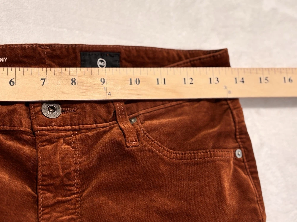 The AG Adriano Goldschmied Brick Farrah High Rise Skinny Jeans in size 28R are a stylish and versatile option for women's wardrobe. Made from a cotton blend fabric with a velveteen texture, these jeans feature a mid-rise fit with a 29-inch inseam and a skinny style for a modern look. The jeans are accented with the brand's logo and have a traditional 5-pocket design, perfect for adding functionality to the designer piece. With a vibrant orange color and stretch material, these jeans are suitable for wearing in the winter, fall, and spring seasons.