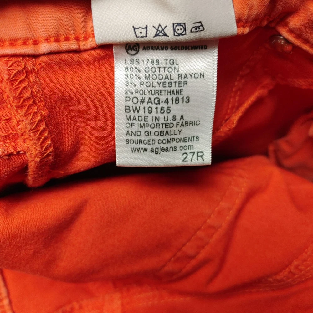 AG | Adriano Goldschmied Women's Orange Denim Mid Rise Skinny Ankle Jeans 27R Please see the pictures for details...I want to make sure you're aware of the condition and be completely happy with your purchase. I always try to include all relevant surfaces, but please send me a note if you need additional pictures to clarify and details. I will always answer as soon as I can (usually when I can break away from the day job) and am always open to offers. For clothing, please disregard wrinkles as I tend not to iron/steam because they are just going to get wrinkled when put into the mailer. The mailer will probably be a 15x11 envelope for most items with the usual exceptions being large/bulky jackets. Thank you for shopping and I hope to hear from you soon. Chris Size: Womens 27 Condition: Pre-Owned Good