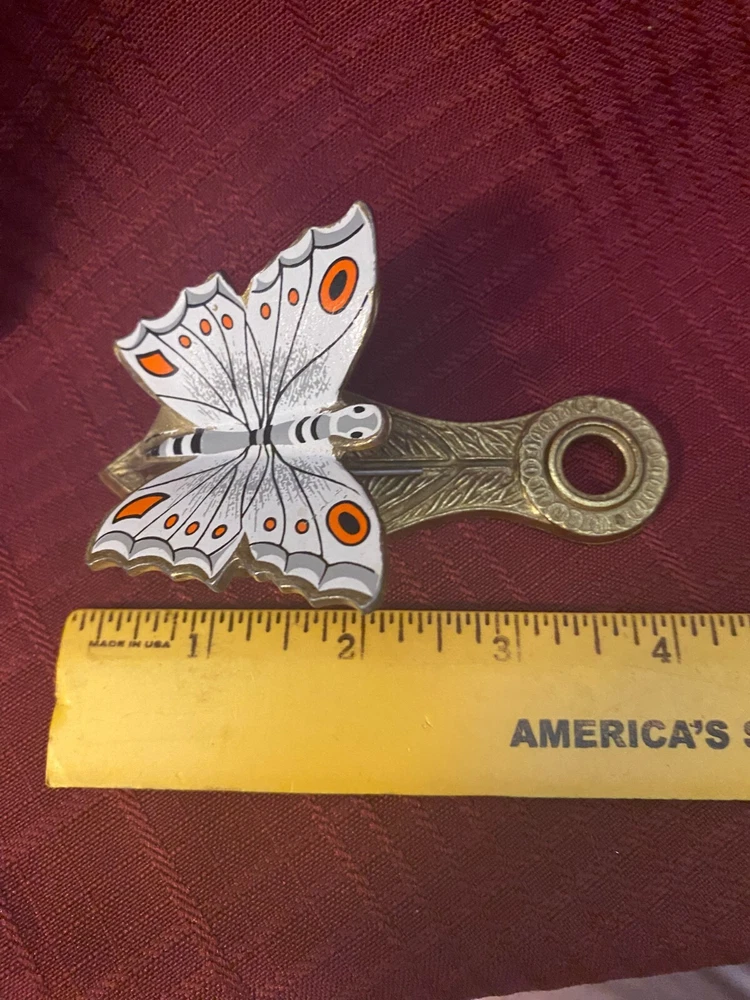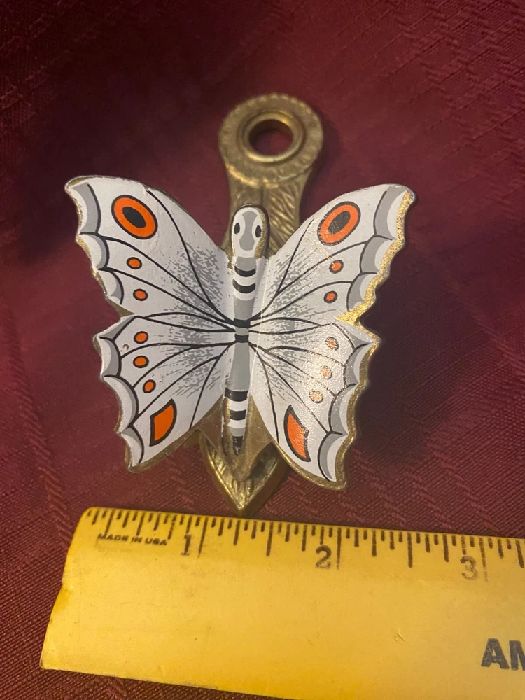 Welcome to ANRESA's ATTIC ~~~~~~~~~~~~~~~~~~~~~~~~~~~~~~~~~~~~~~~~~~~~~~~~~~~~~~~~~~~~ ~~~~~~~~~~~~~~ AN is for Anthony, RE for Rebecca and SA for Sarah (ANRESA)...my 3 grown children (in their 40s now). My attic is full of awesome treasures. Once loved and now these treasures need a new home to be cherished and enjoyed. ~~~~~~~~~~~~~~~~~~~~~~~~~~~~~~~~~~~~~~~~~~~~~~~~~~~~~~~~~~~~~~~~~~~~~~~~ Description: Mid Century ALLIED BRASS memo/note clip...Orange & White enamel painted Butterfly. In extremely nice condition. ************************************************************************************************************* PLEASE review all the pictures...Pictures tell a good bit of the story...if you have further questions...please ask! I am very upfront and provide as many pictures as possible- please look at all pictures. I do offer returns HOWEVER, when returning items- the buyer AND/OR seller always assume unnecessary extra cost. Certainly, contact me and we will work through any issues. Appreciate your understanding. ************************************************************************************************************ Please visit my store...I am good about accepting offers and combining shipping! Lucky bid/offer winners...PLEASE leave me feedback!! I try to keep up & do the same! ***************************** Thanks for the visit, Come back again!!!