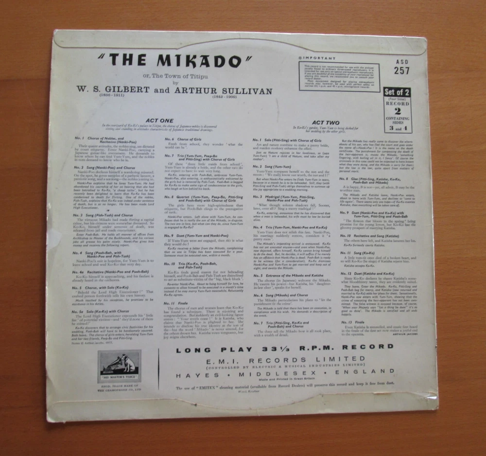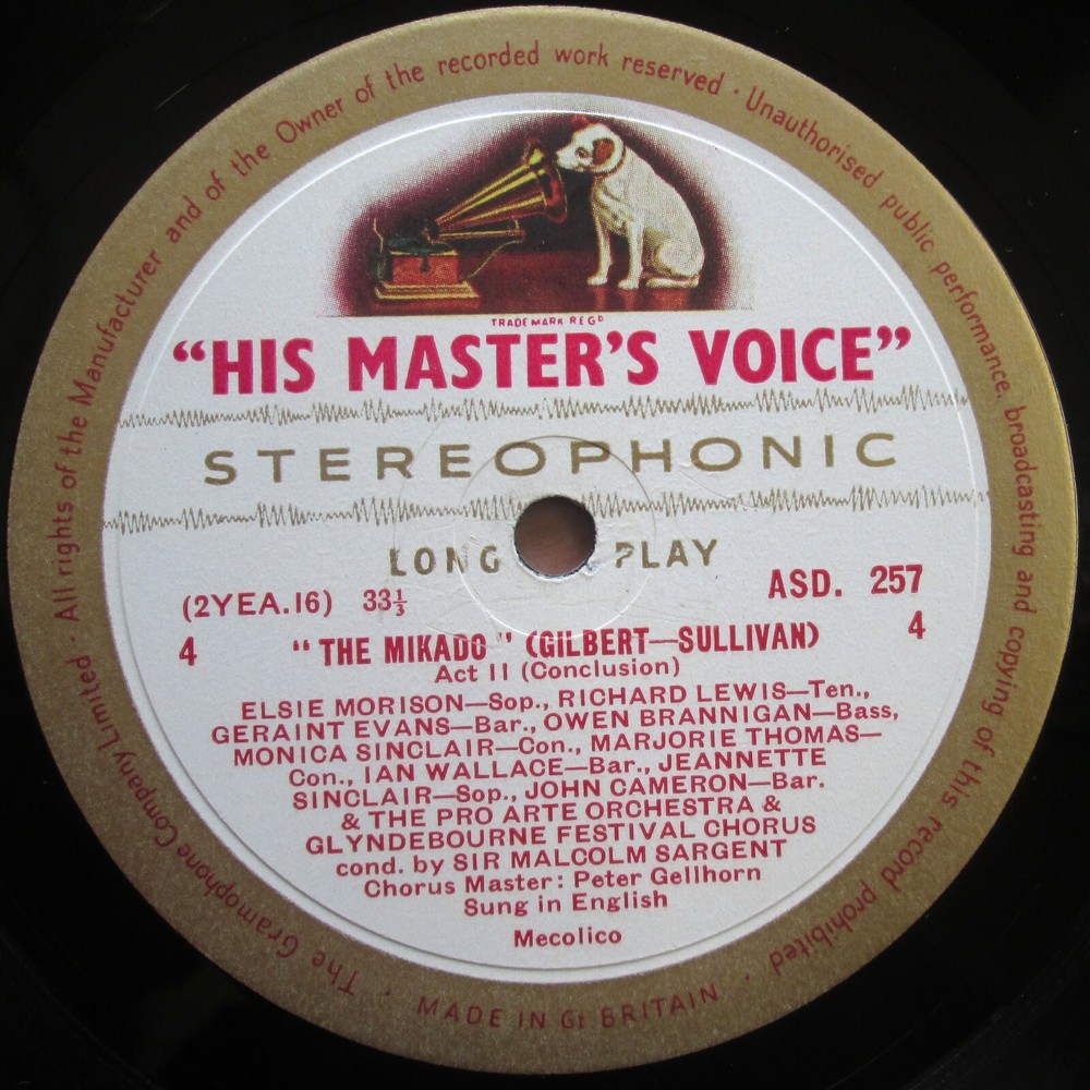 Combined Postage Available UK Free after first item Europe £20 p&p for unlimited items Worldwide postage discounts available on all items Gilbert & Sullivan : The Mikado (2 of 2) Sir Malcolm Sargent / Owen Brannigan / Geraint Evans / Richard Lewis etc Vinyl excellent / Cover excellent (record 2 of 2 ONLY) EMI ASD 257 1958 Stereo LP ED1 White Gold Label **RECORD 2 OF 2 ONLY** Free UK postage for additional items International postage discounts available on request All records cleaned on an OKKI NOKKI machine before posting Professionally packed in record mailer with polythene sleeve and cardboard stiffeners Vinyl is visually graded under strong natural light and briefly audio tested for any problems. MINT (M) : Sealed or unplayed. NEAR MINT (NM) : Vinyl as new, no marks or scratches. Cover looks and feels like a new item. EXCELLENT (EX) : One or two hairline marks to vinyl, cover has slight wear to edges/creasing etc. VERY GOOD (VG) : Feels more worn. Cover has creasing/wear and vinyl has several marks and possibly some surface noise Unusual or rare items are occasionally listed below VG quality in which case "see description" Items are graded vinyl/cover While these grades are useful as a general guide, each individual LP is given a more accurate detailed description in the listing. Violin 19