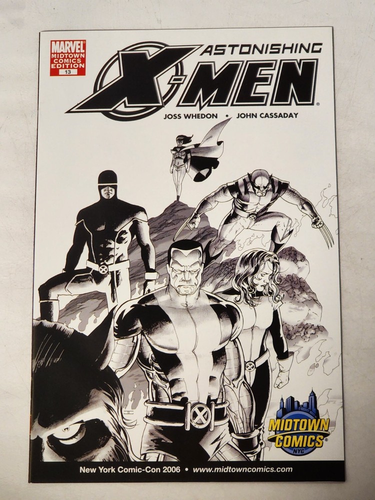 ASTONISHING X-MEN #13 MIDTOWN COMICS NYCC 2006 VARIANT JOSS WHEDON MARVEL CR4 Listing is for Astonishing X-Men #13. Midtown Comics NYCC 2006 Variant. 2006 Marvel Comics. Book shows minimal handling wear. Wou ld make a nice a ddition to any collection. Please view all photos, as this is exactly what you will receive This item is a must have addition to any collection. We have more items up on eBay this week! We also have many more items in our eBay store. Use our eBay Store search function. Combine wins to save on postage, we also ship internationally! U.S. Bidders to pay $ 6.00 shipping. International bidders - email me before you bid for a shipping quote. Combine like orders and save on shipping. Customer service is our number one priority, contact us for any problems with combined shipping or other questions. Please check out our other auctions for more hard to find items, Comics, Graphic Novels, TPB's, Records, Games, Movies, Action figures, Toys, Non-Sports/Sports Cards, and Vintage Magazines. INTERNATIONAL BIDDERS - EMAIL US BEFORE BIDDING TO GET A SHIPPING QUOTE. Import duties, taxes, and charges are NOT INCLUDED in the item price or shipping charges. These charges are the buyer's responsibility. Please check with your country's customs office to determine what these additional costs will be prior to bidding / buying. These charges are normally collected by the delivering freight (shipping) company or when you pick the item up. Do not confuse them for additional shipping charges. We do not mark merchandise values below value or mark items as "gifts". US and International government regulations prohibit such behavior. RI Residents please add 7% for sales tax. You can pay us with ALL major credit cards or with PayPal. Pay me securely with any major credit card through PayPal! Please check out the other auctions we currently have running on eBay. ALL EBAY WINS CAN BE PICKED UP IN PERSON TO SAVE ON SHIPPING. E- MAIL US 24 HOURS IN ADVANCE OF PICK-UP PLEASE!