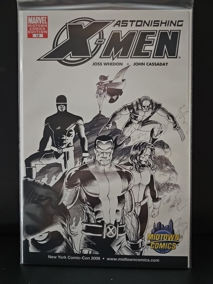 This Astonishing X-Men #13 comic book from Midtown Comics is a must-have for any fan of US Comics, especially those interested in vintage items. The single issue format features the iconic superhero team of the X-Men, including Cyclops, Colossus, and Beast, and is a part of the Astonishing X-Men series title. The comic book is a variant cover, boarded, and 1st edition, making it a unique addition to any collection. The English language comic book is from the Marvel Comics publisher and is intended for a general audience. This item is a great find for collectors and fans of superheroes.