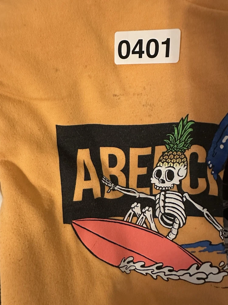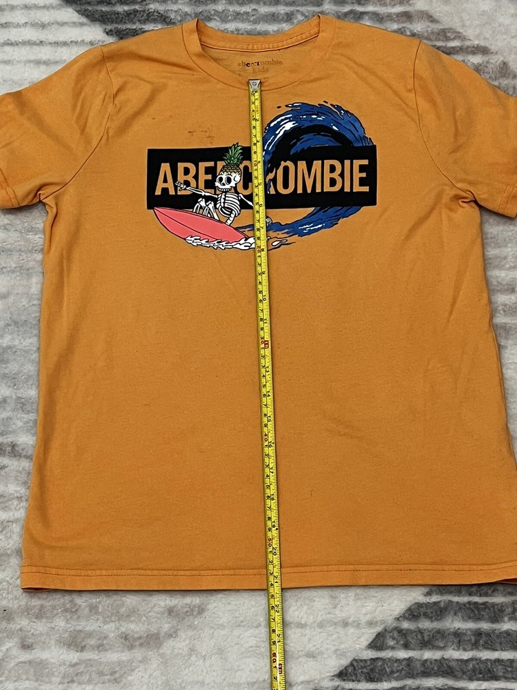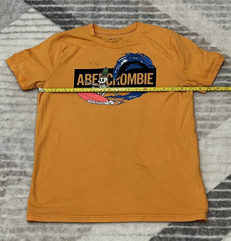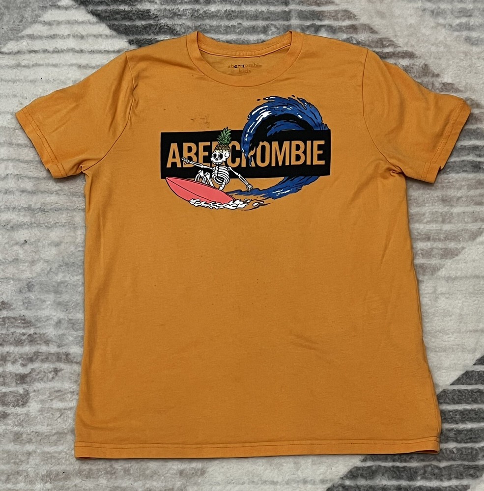 Abercrombie Kids Orange Skeleton Surfer T-shirt Sz 15-16. Imperfections. See pics....